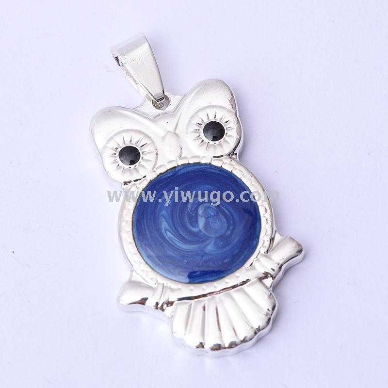 韩版可爱动物吊坠镶蓝色珠子猫头鹰项链手链不锈钢吊坠时尚潮流