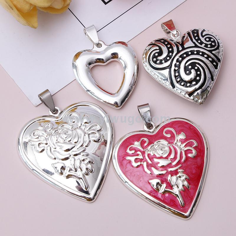 不锈钢相盒吊坠挂件时尚爱心相盒服饰项链空心形挂饰配件厂家直销