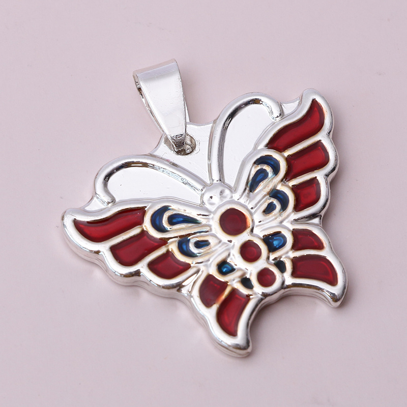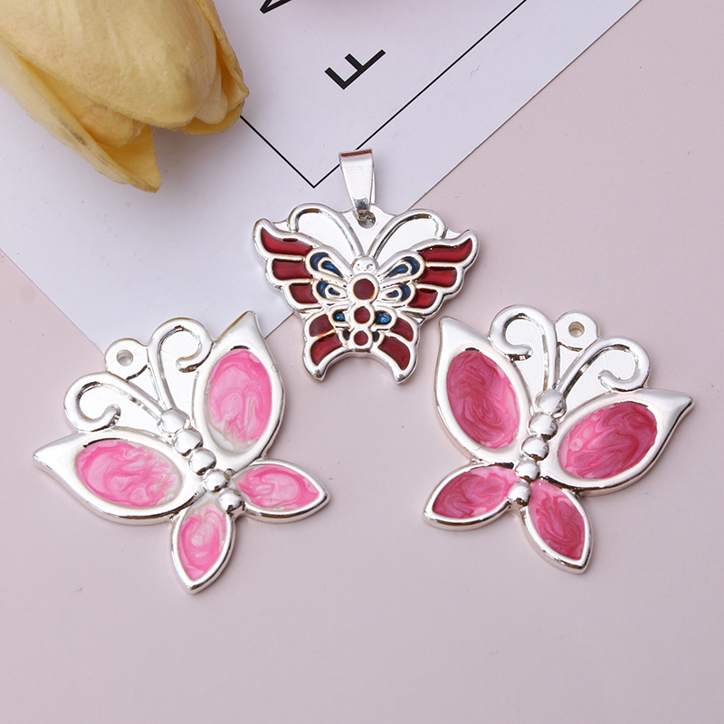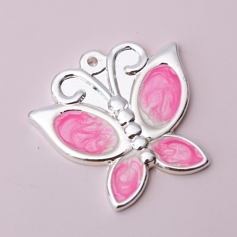 不锈钢时尚粉色红色滴胶蝴蝶项链手链吊坠不锈钢珐琅吊坠厂家直销