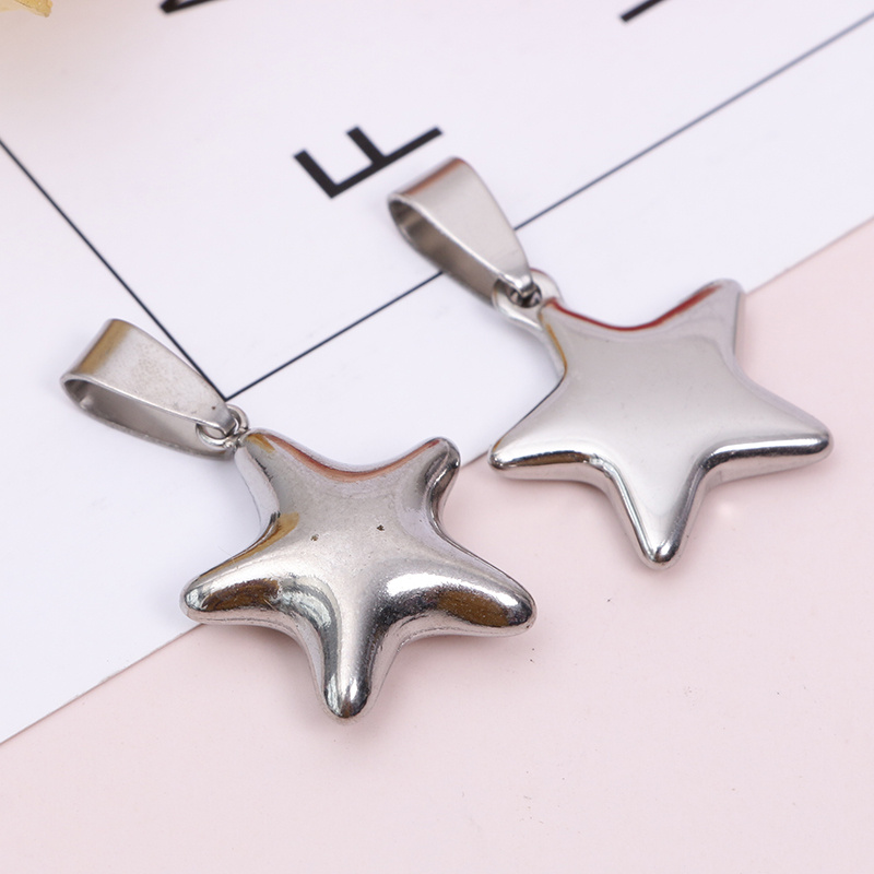 不锈钢银色星星吊坠空心项链手链五角星尾坠牌子海星饰品配件时尚