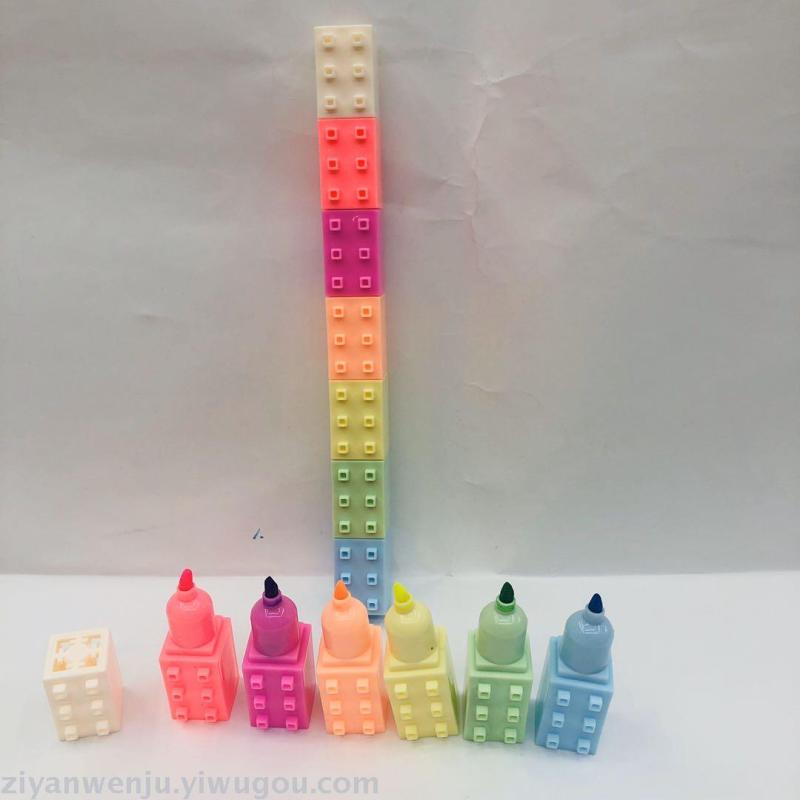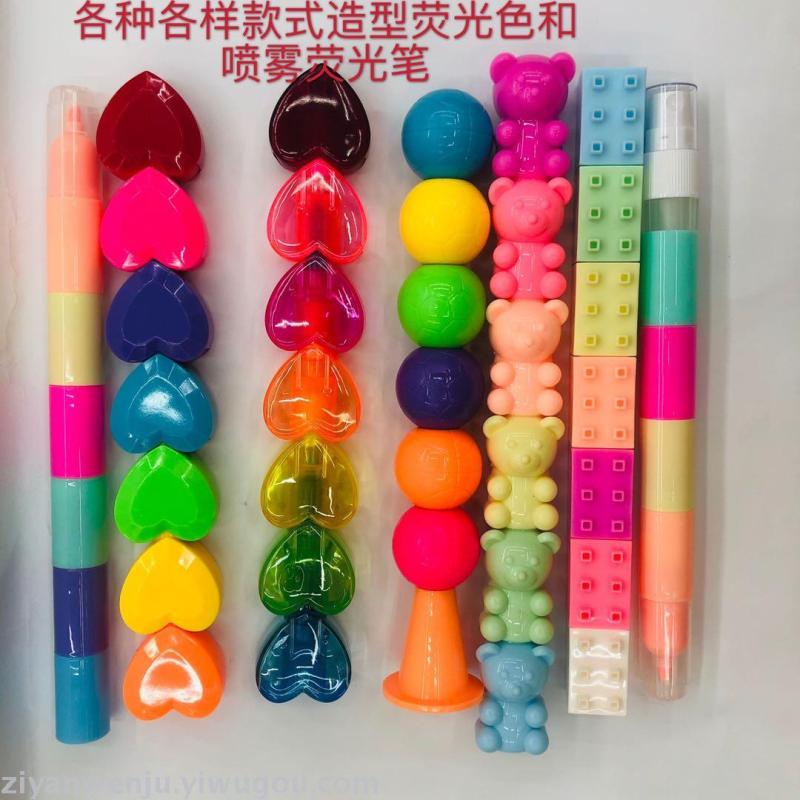 爱心足球小熊积木各种形状造型可爱学生连体多节换头创意多色笔