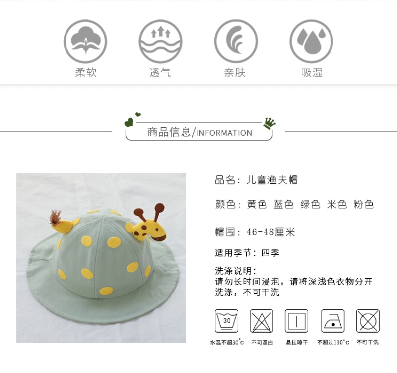 儿童帽子春秋薄款时尚夏季潮萌男童女童遮阳防晒宝宝婴幼儿渔夫帽