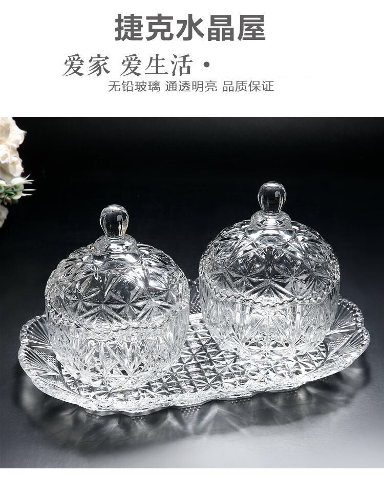 水晶玻璃糖果盅欧式创意带盖糖果罐托盘水果糖果斗储物罐创意客厅