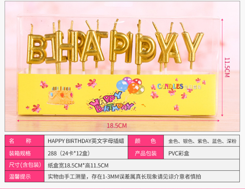 生日派对蜡烛镀金字母生日蜡烛创意装饰英文蛋糕蜡烛装饰工艺蜡烛