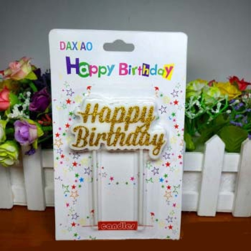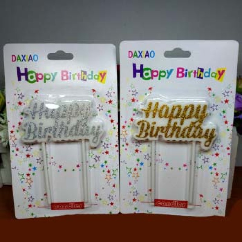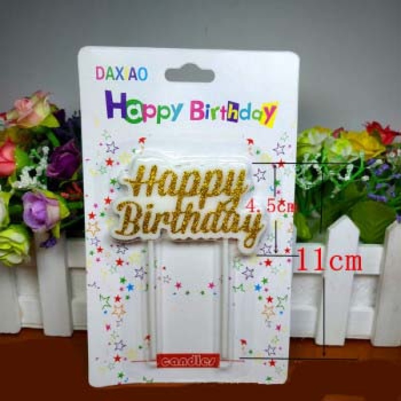 长杆镀金happybirthday生日蜡烛金色银色金粉银粉装饰工艺蜡烛