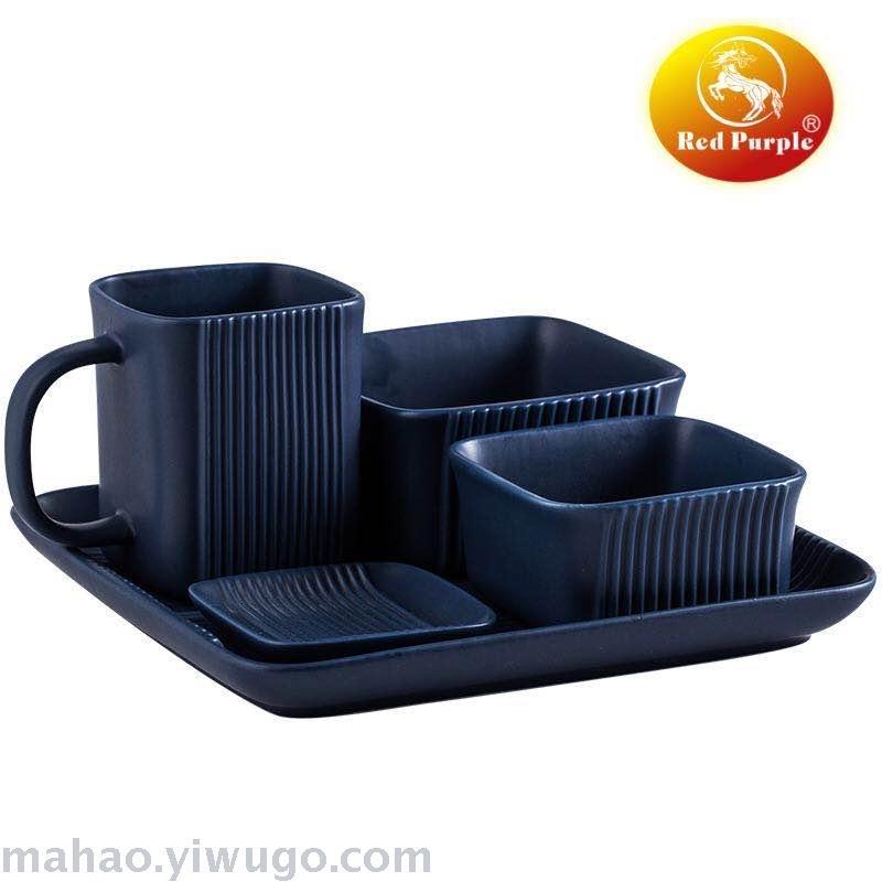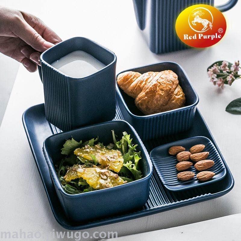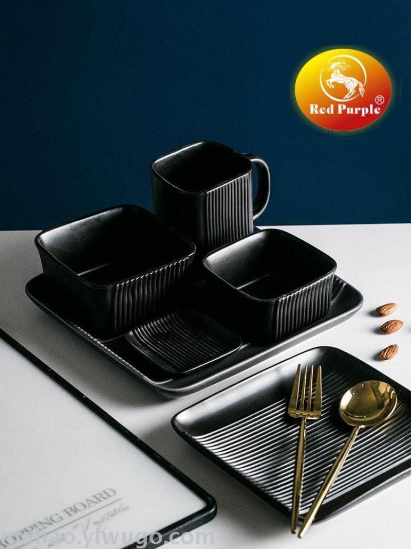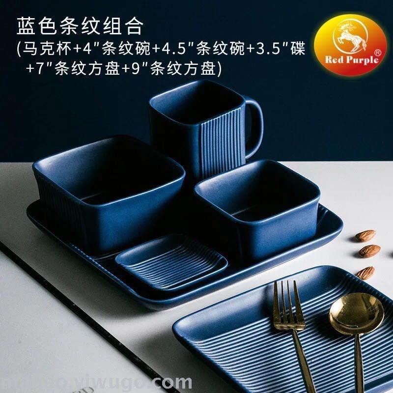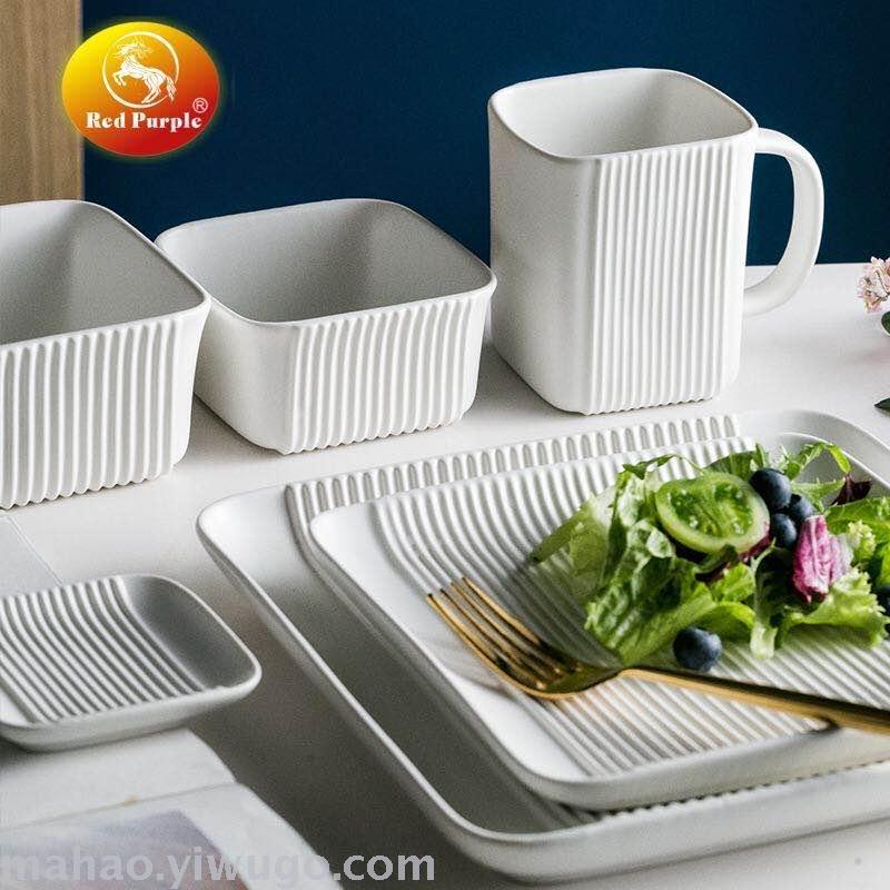 方形条纹系列酒店家用陶瓷创意餐盘西餐餐具套装特色餐厅定制