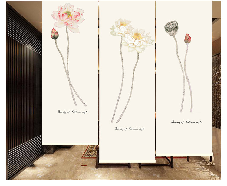 中式现代简约田园风个性荷花窗帘 中国风遮光防紫外线隔断帘卷帘