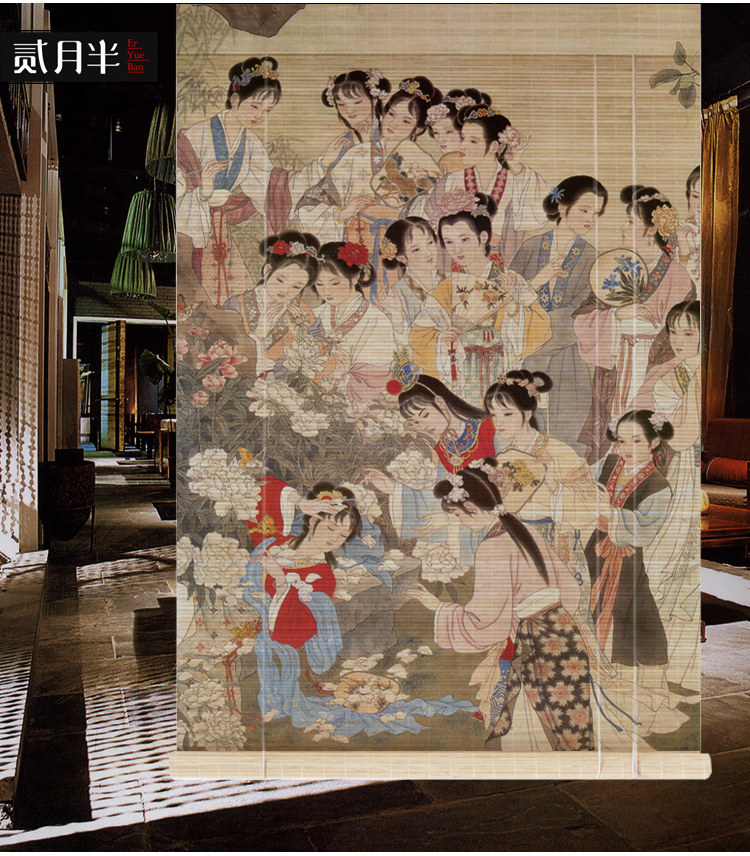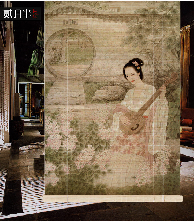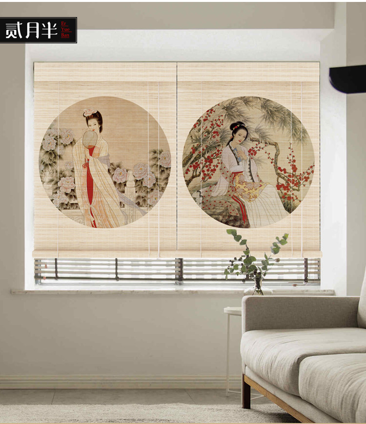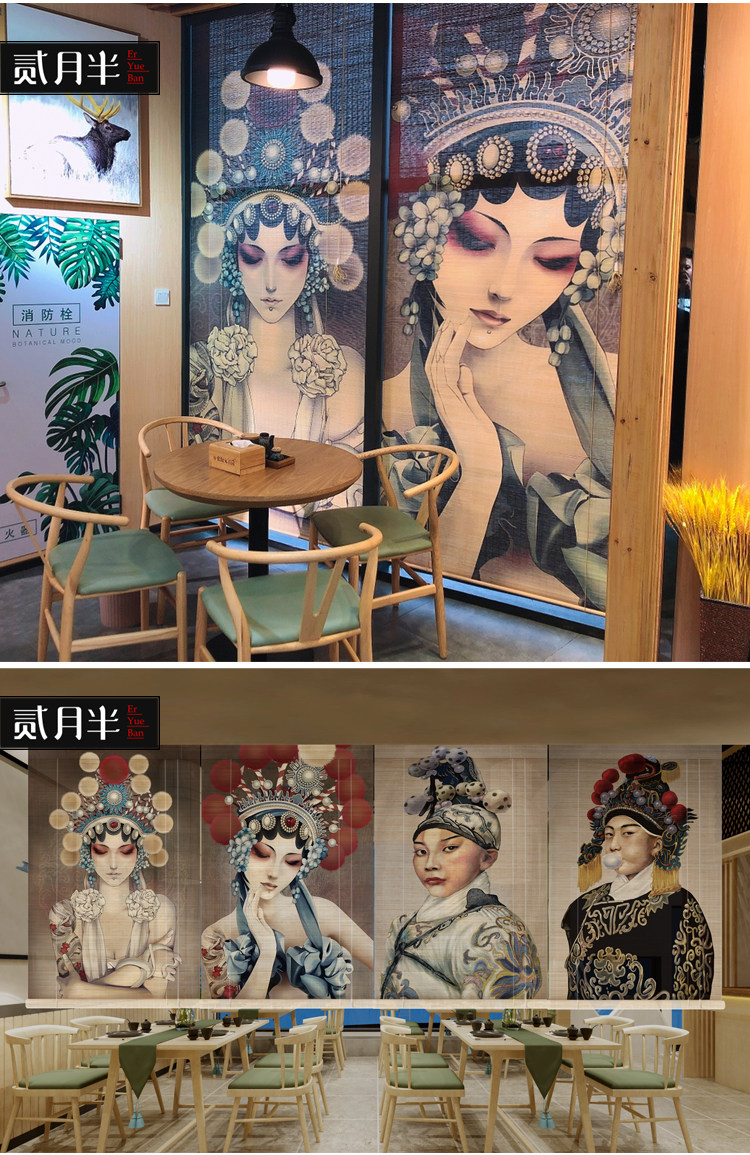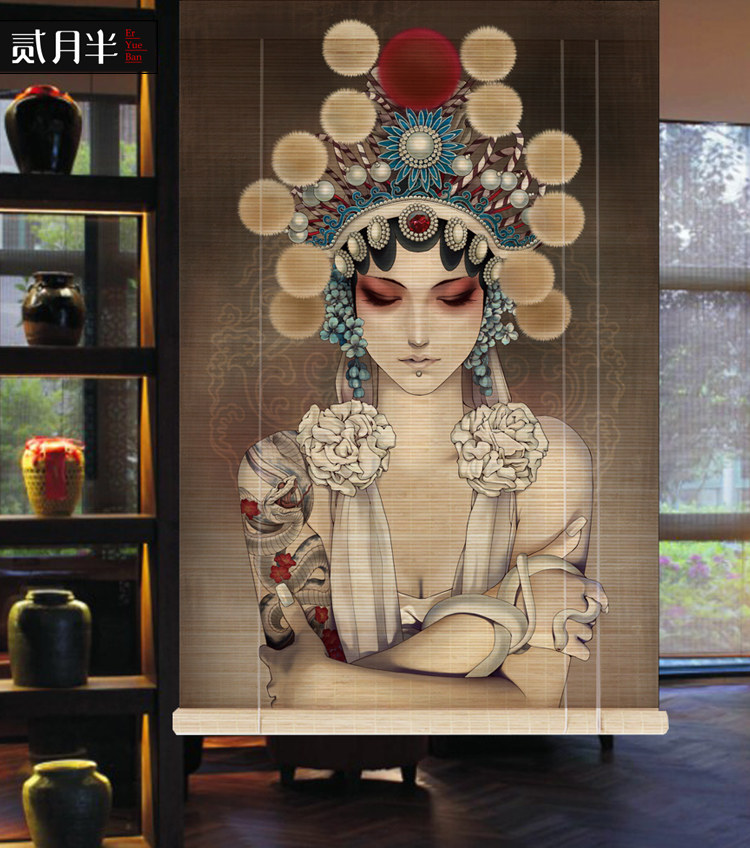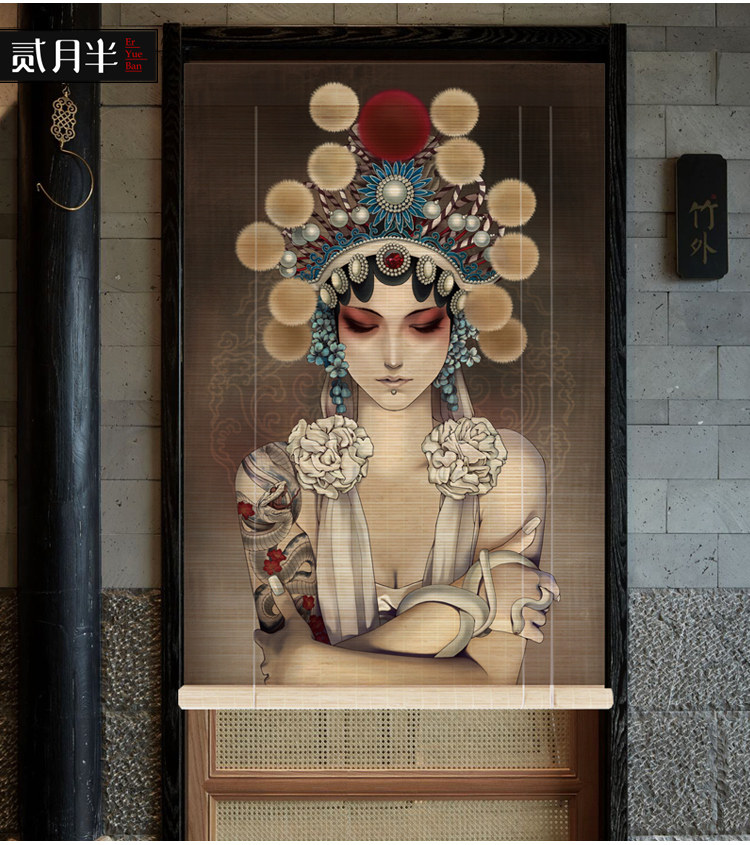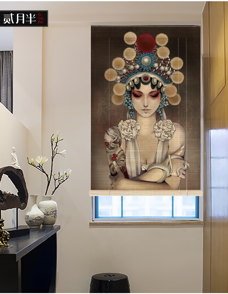 京剧花旦中式印花竹帘窗帘卷帘升降美女人物个性装饰挂画帘门帘子