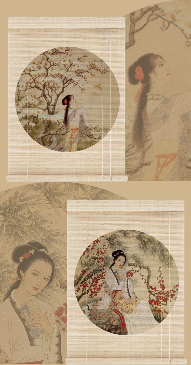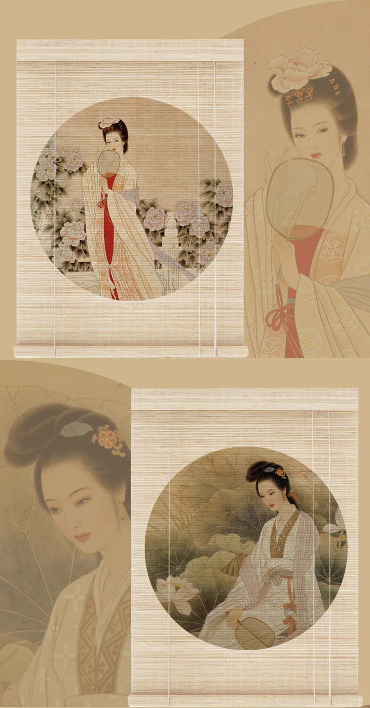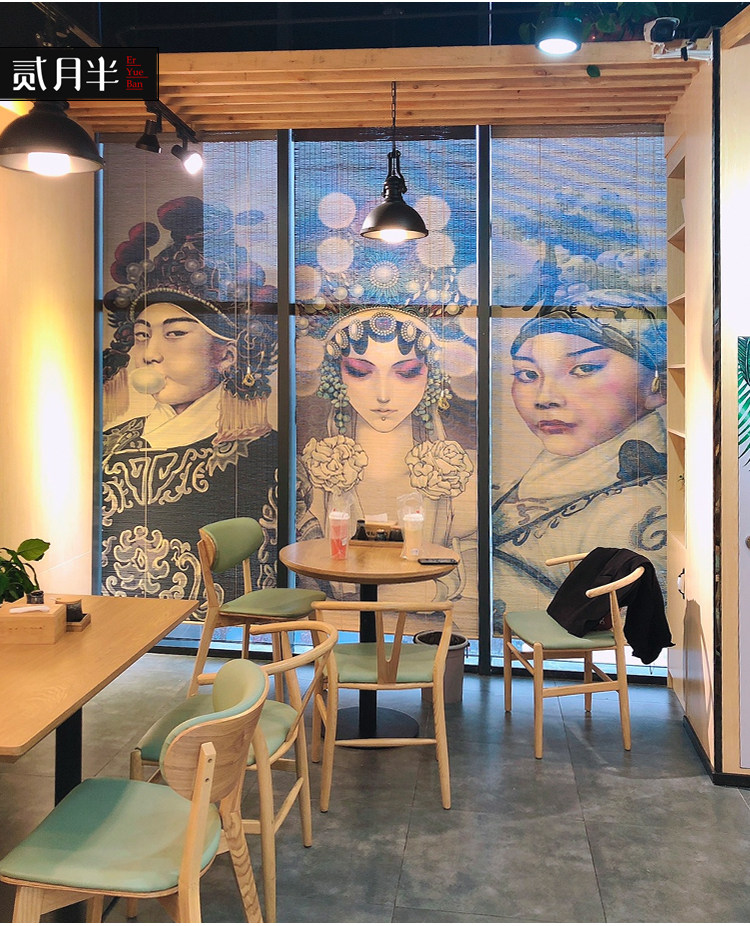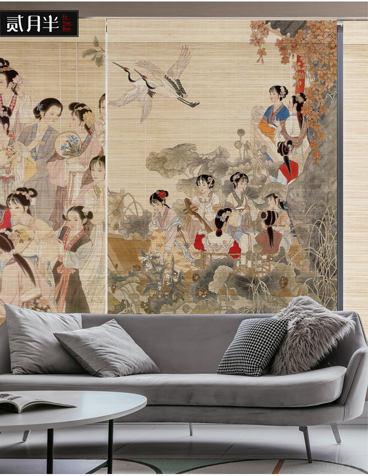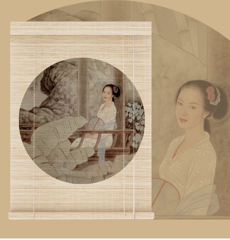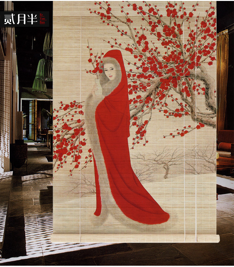 京剧花旦中式印花竹帘窗帘卷帘升降美女人物个性装饰挂画帘门帘子