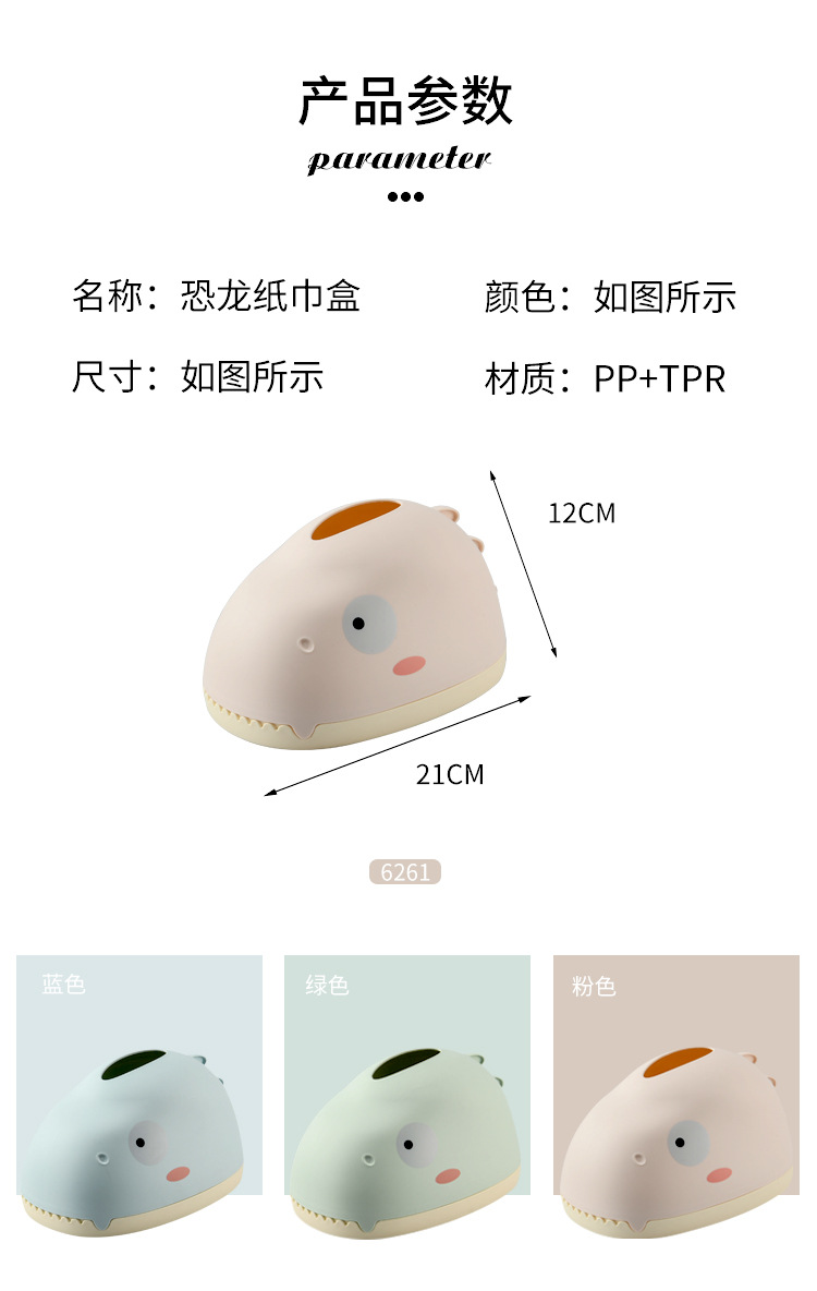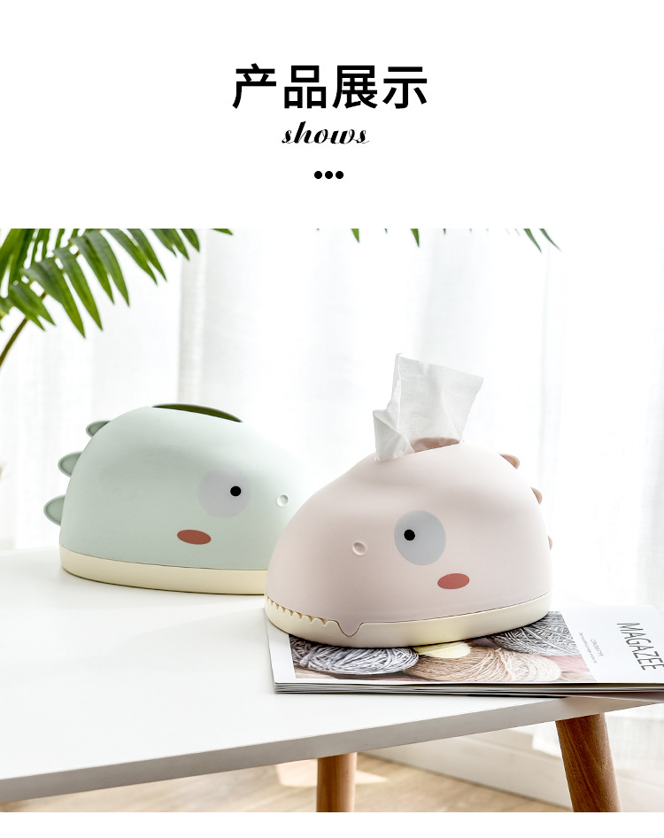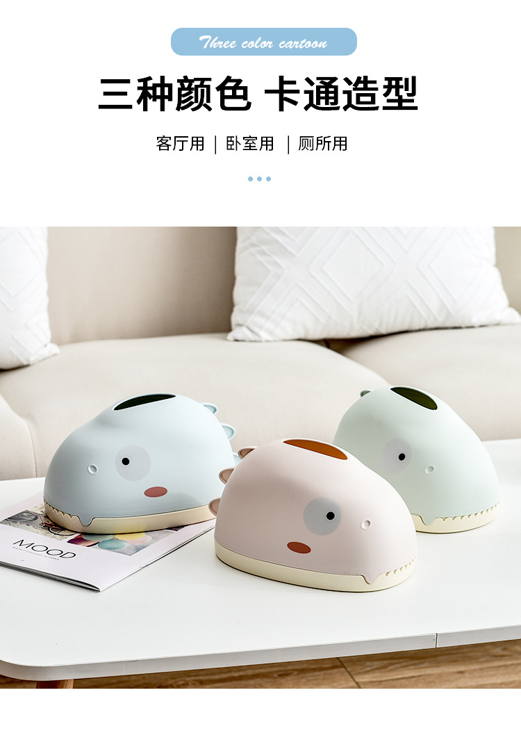 可爱恐龙设计家用抽纸盒 造型美观家用客厅纸巾盒 PP塑料收纳盒