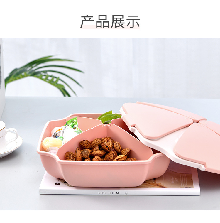 时尚创意四叶草分格果盒 简约按压式大容量零食瓜子收纳盒子