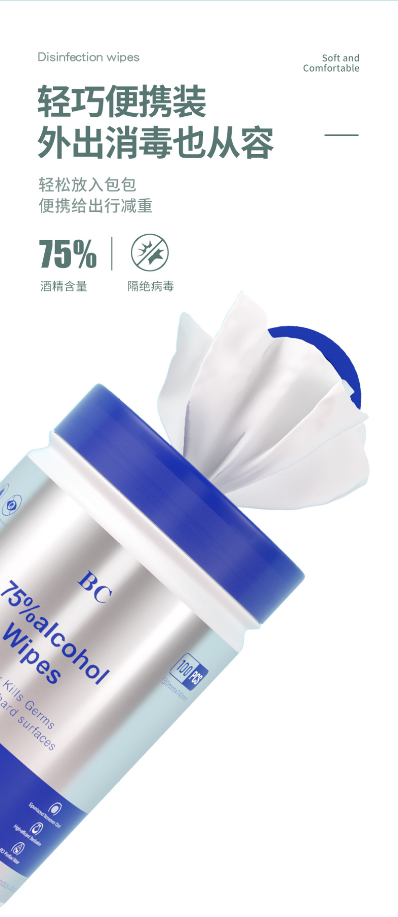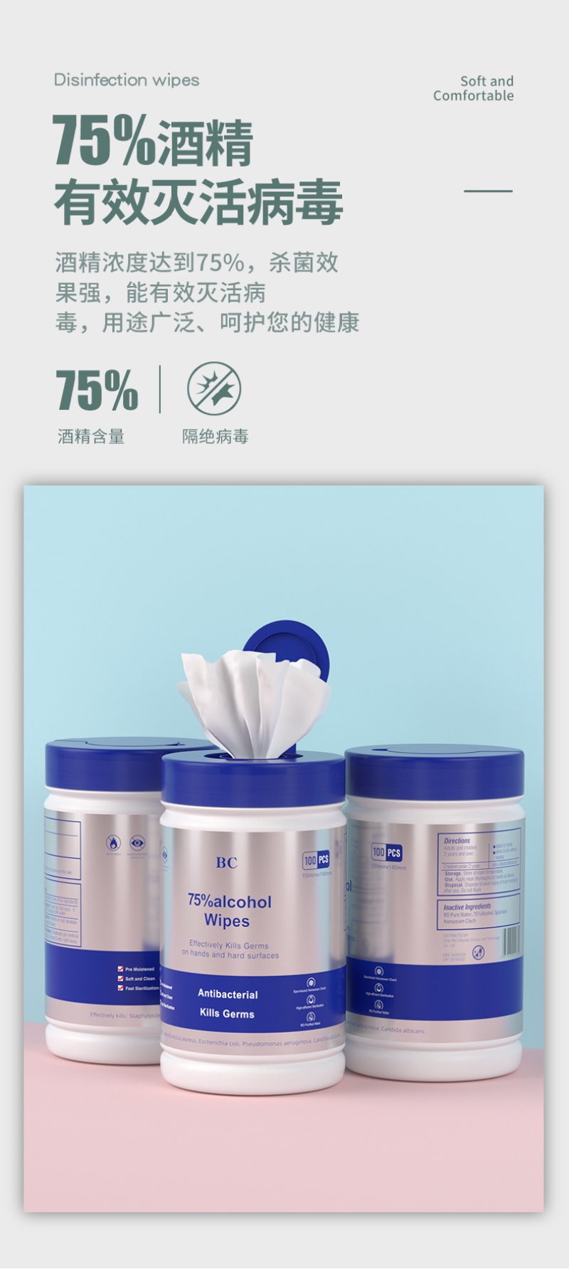 酒精消毒湿巾桶装100抽英文版现货OEM湿巾厂外贸定做加工灌装湿巾