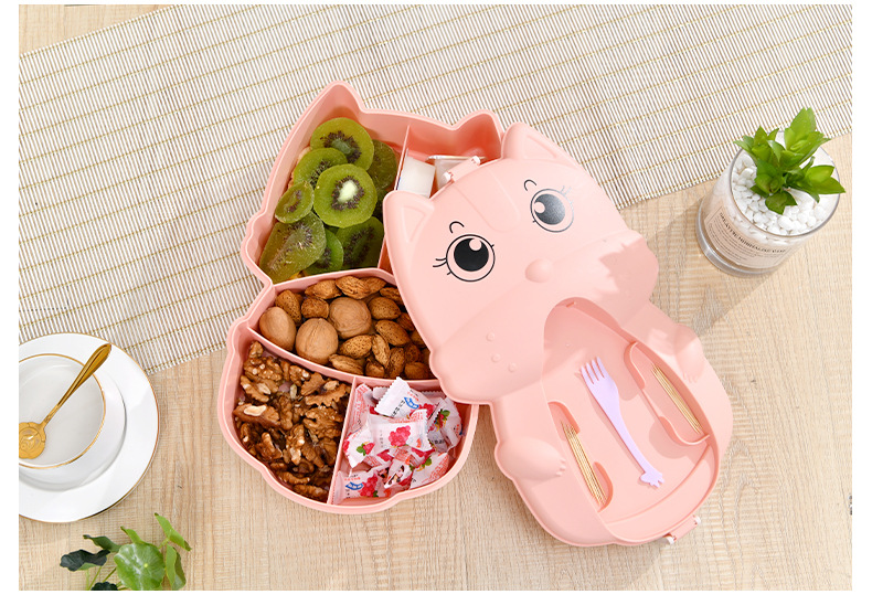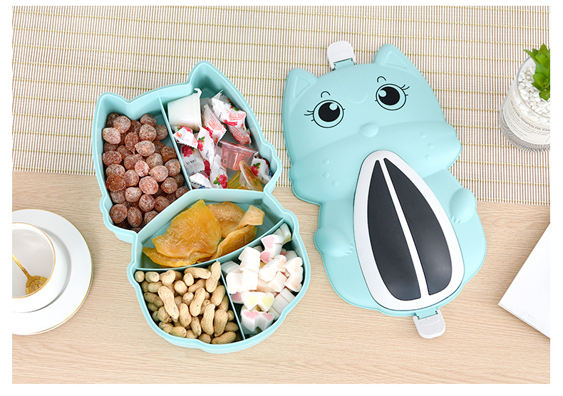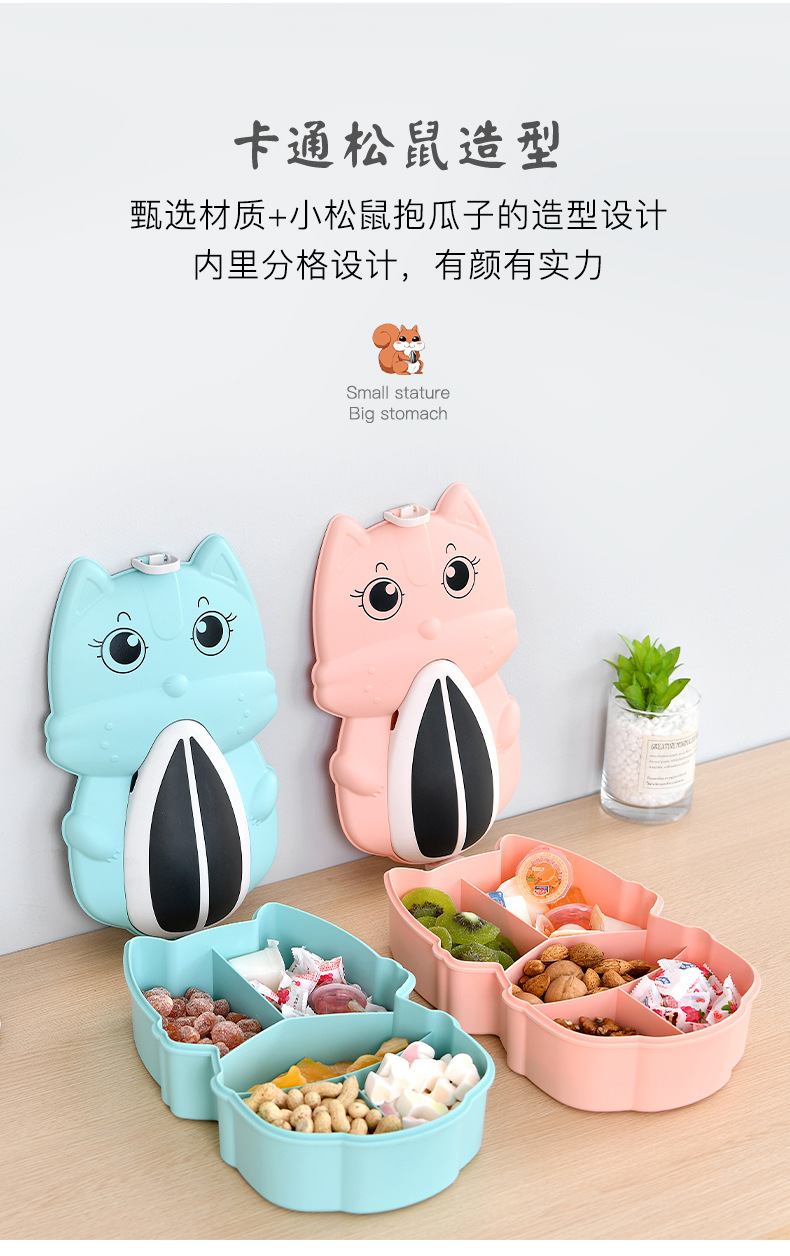 创意卡通松鼠造型果盒 大容量懒人零食收纳盒 居家分格水果果盒