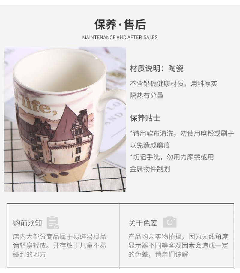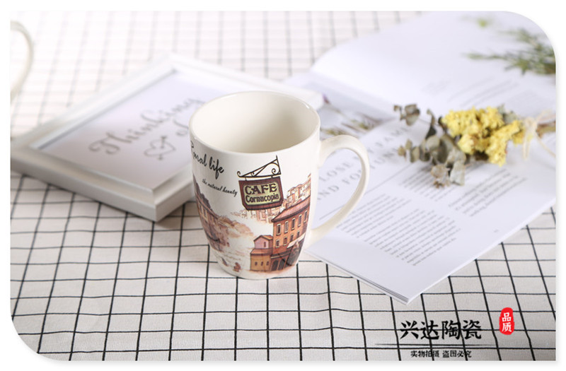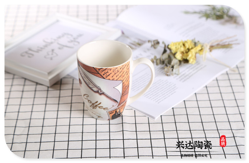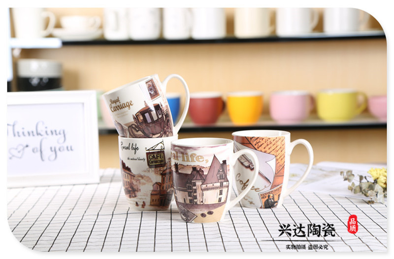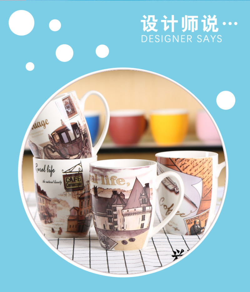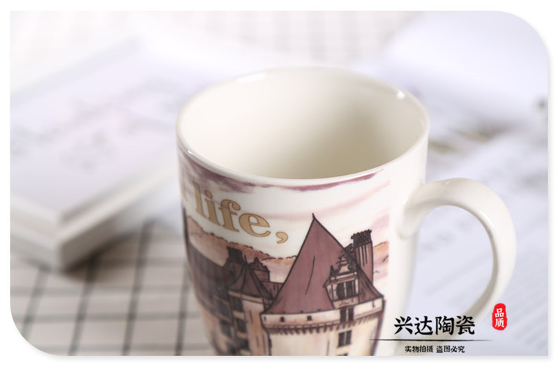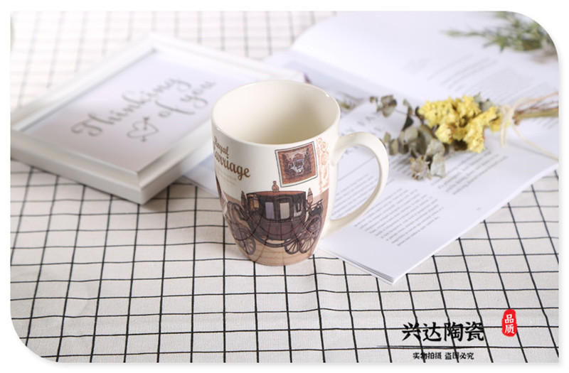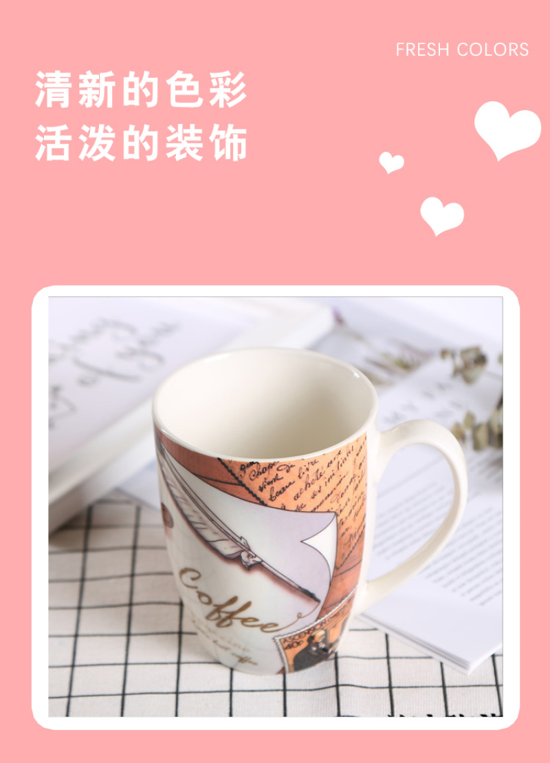 创意欧式大容量陶瓷杯马克杯带盖早餐杯办公水杯子咖啡杯 6668