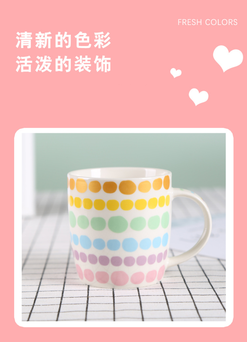日系小清新多彩圆点条纹图案彩绘陶瓷杯英式下午茶茶具马克杯6977
