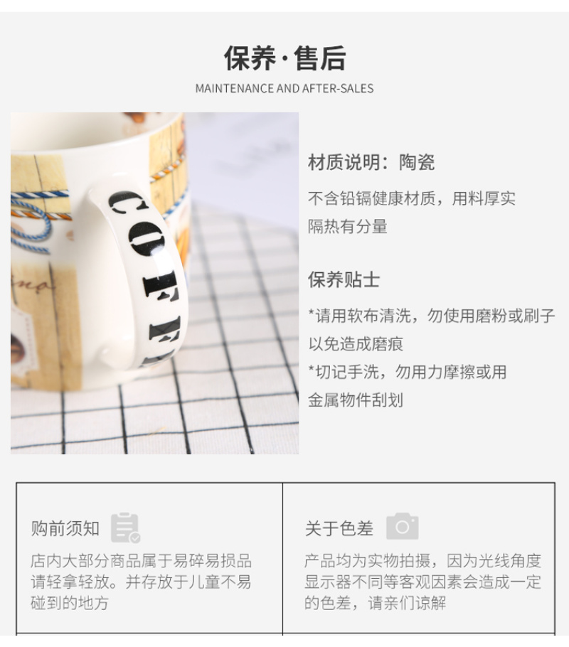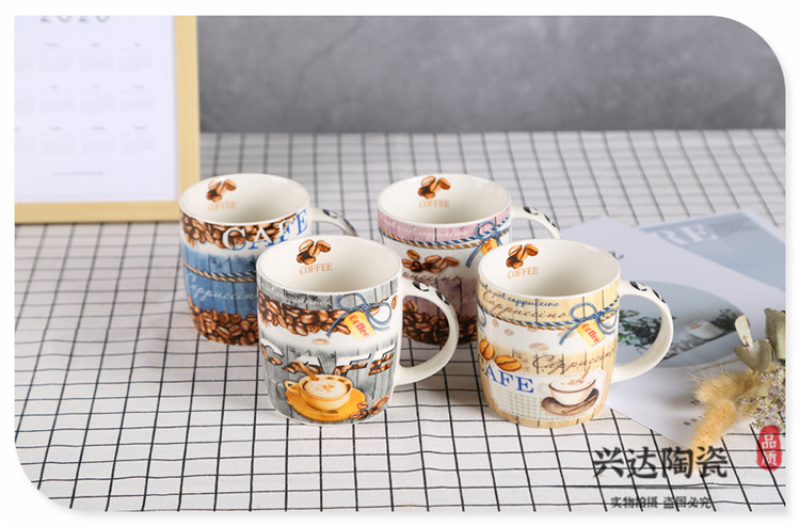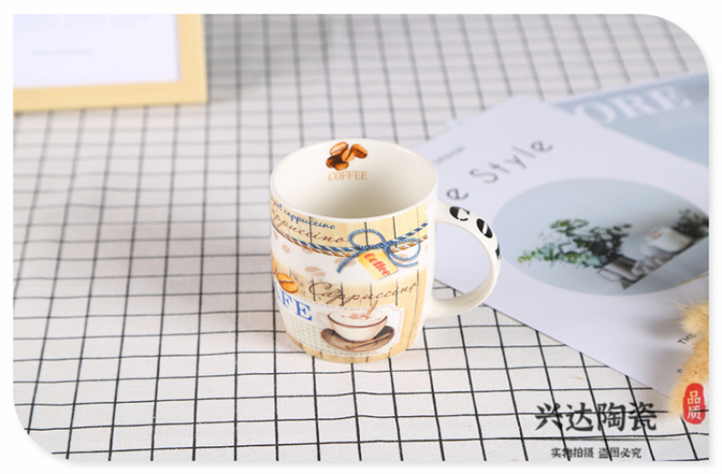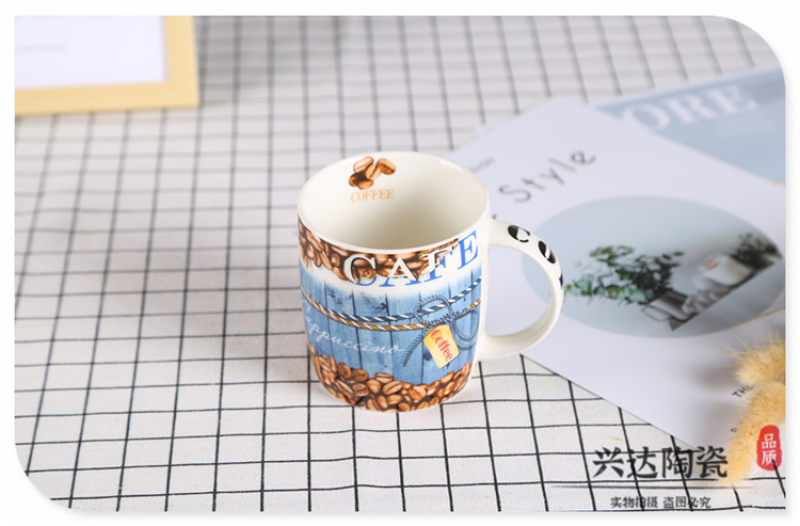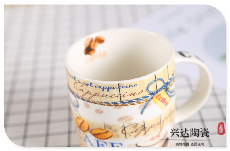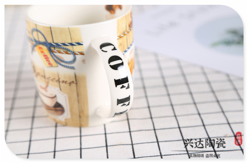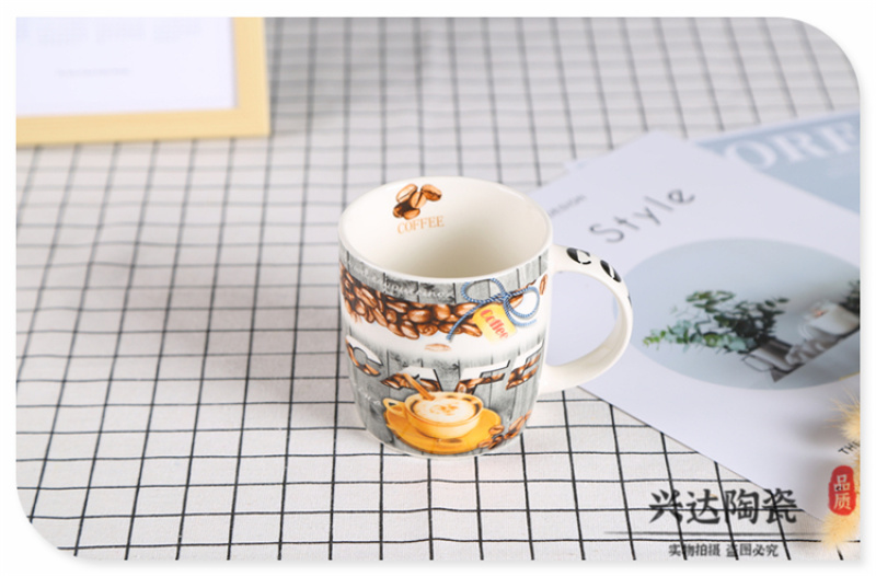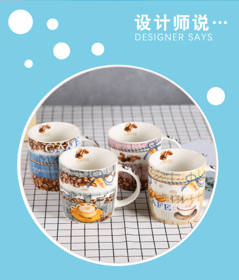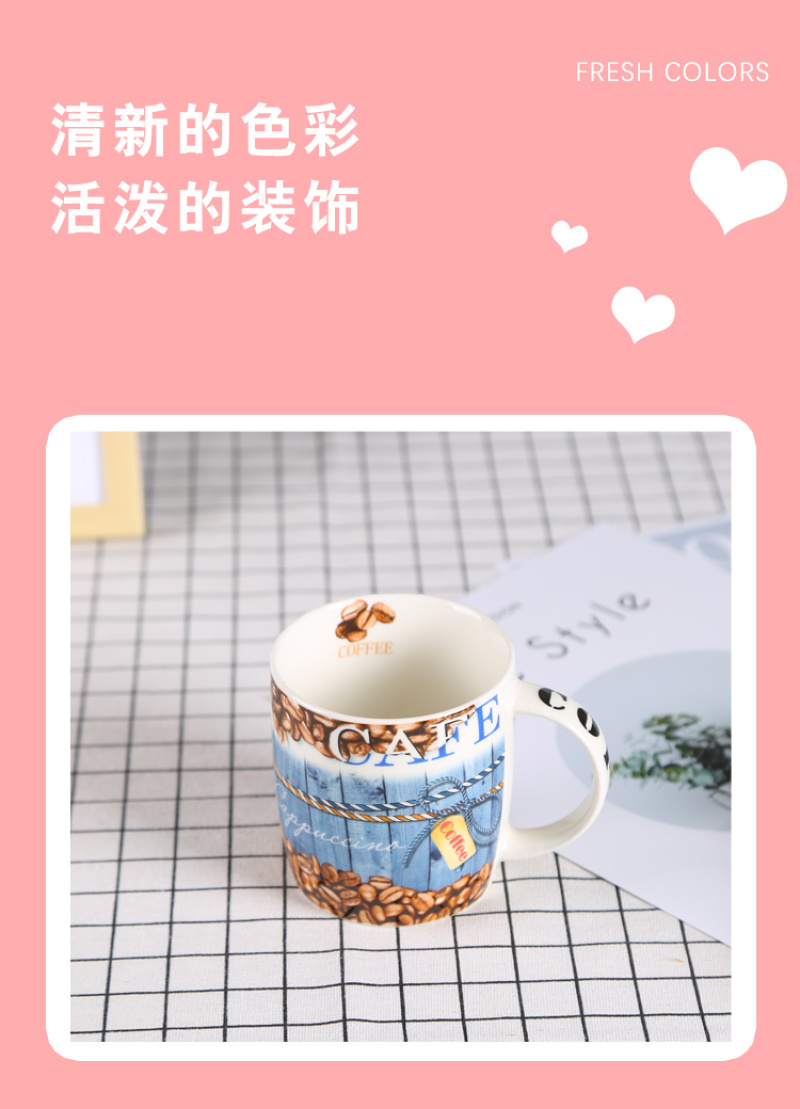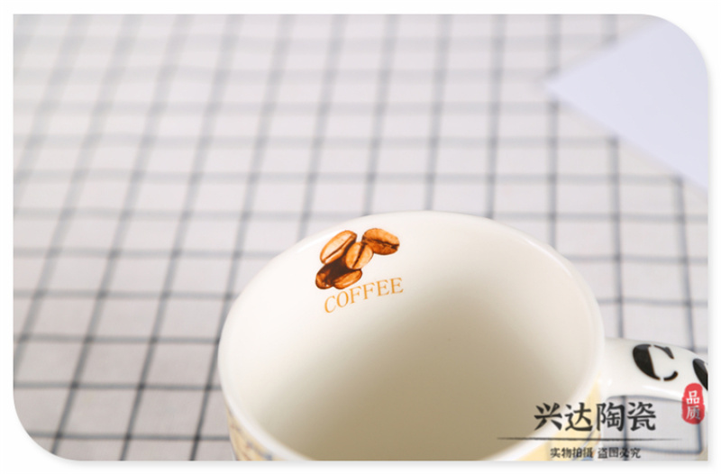 产品名称:不带杯盖设计情侣赠礼用COFFEE主题图案陶瓷马克杯 时尚牛奶水杯