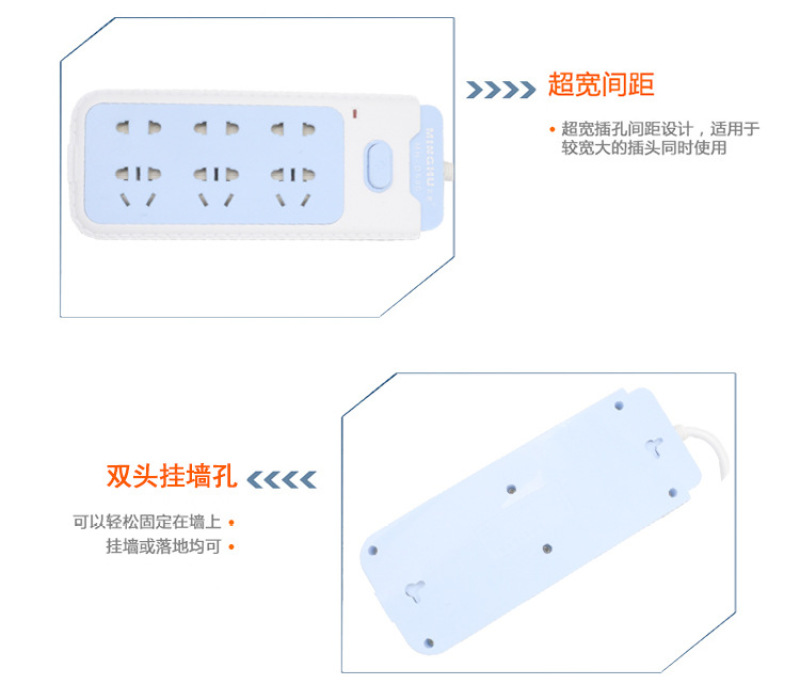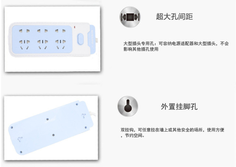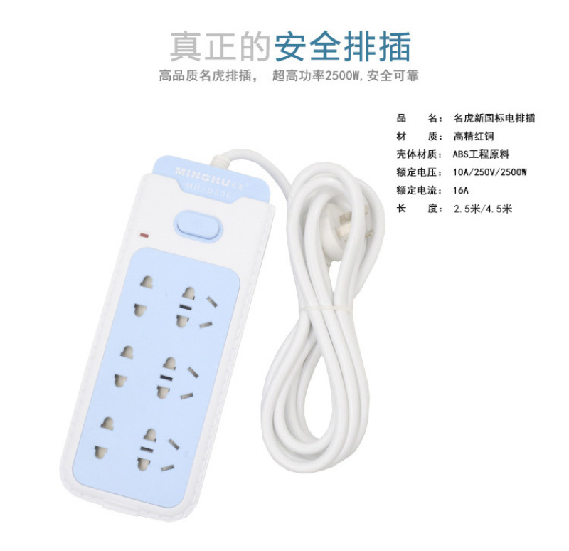 2500W大功率电插座插排新国标安全门儿童锁带开关2.5米/4.5米