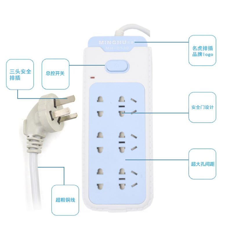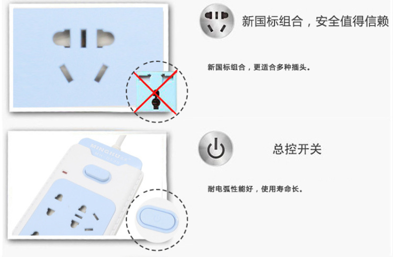 2500大功率 新国标电插排带安全门儿童锁