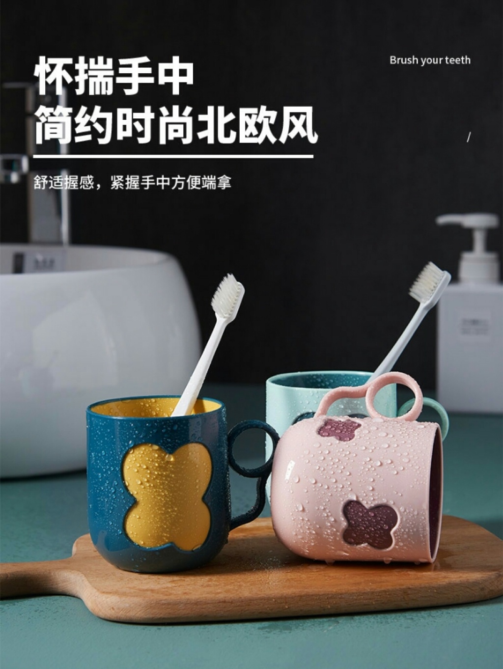 C26-0257北欧加厚双套漱口杯情侣口杯水杯洗漱杯带手柄塑料杯