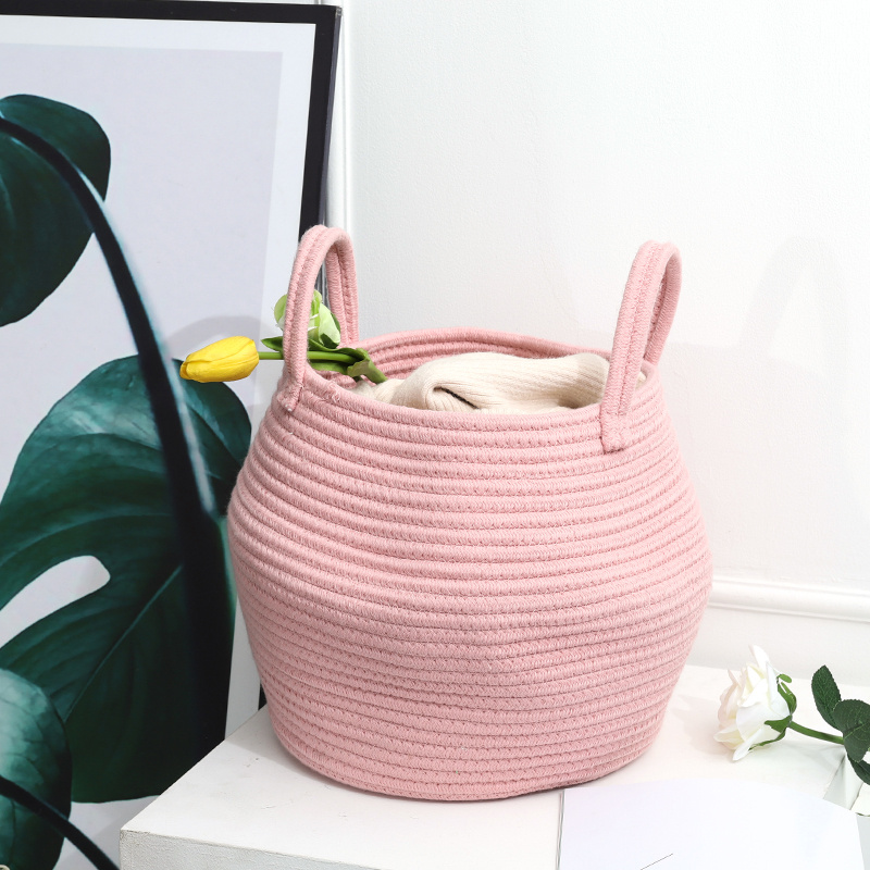 家用手提棉绳收纳篮 编织杂物收纳筐 北欧风收纳筐
