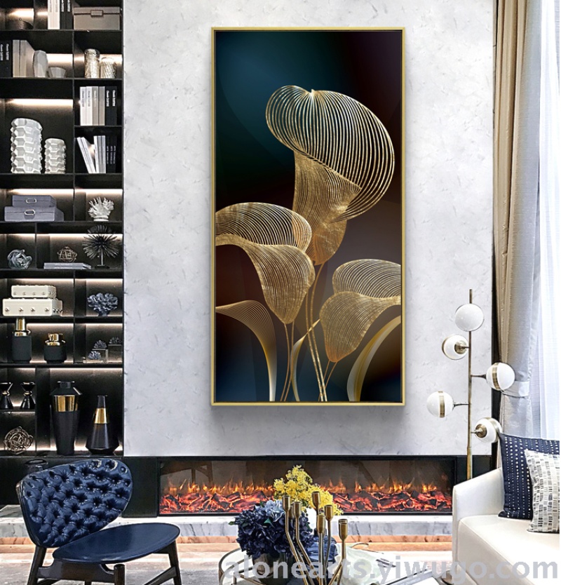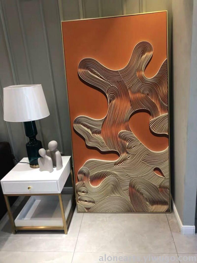 玄关装饰画抽象背景墙壁画竖版走廊轻奢晶瓷画酒店别墅走廊过道
