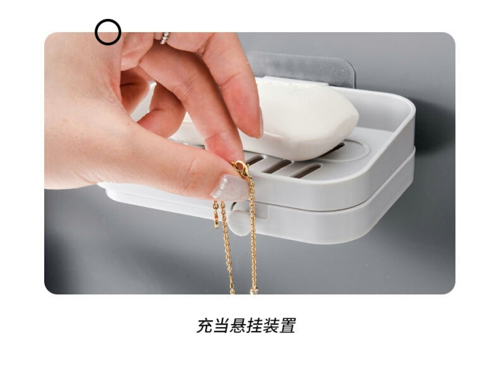 W16-2370新款双层黏贴肥皂盒塑料拆卸浴室香皂收纳架澡堂淋浴盒子