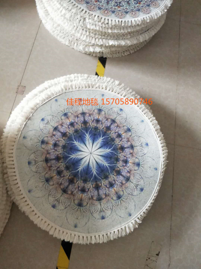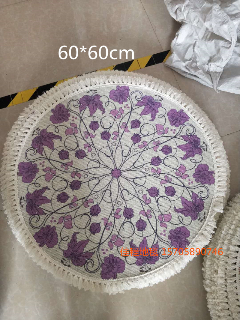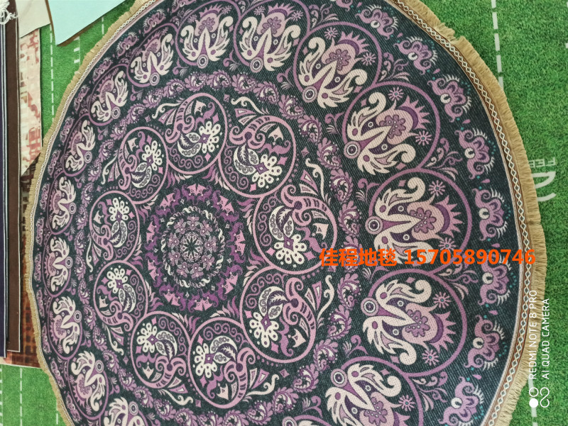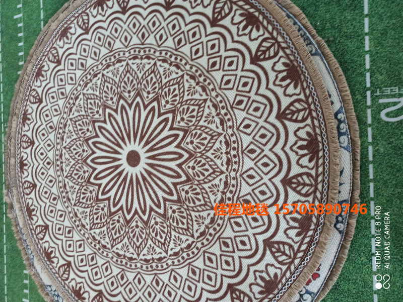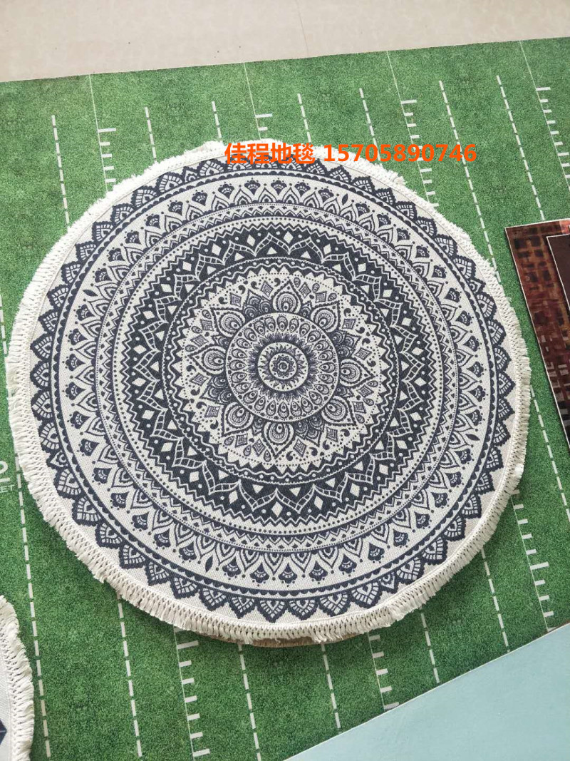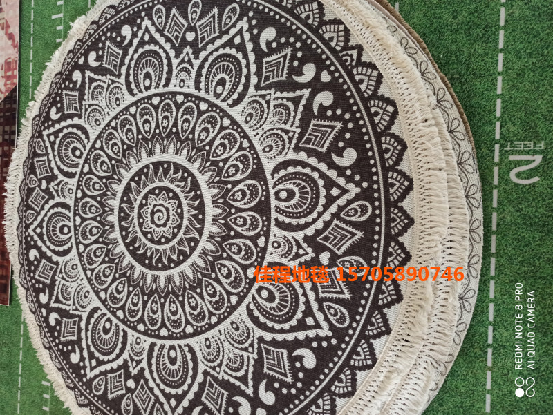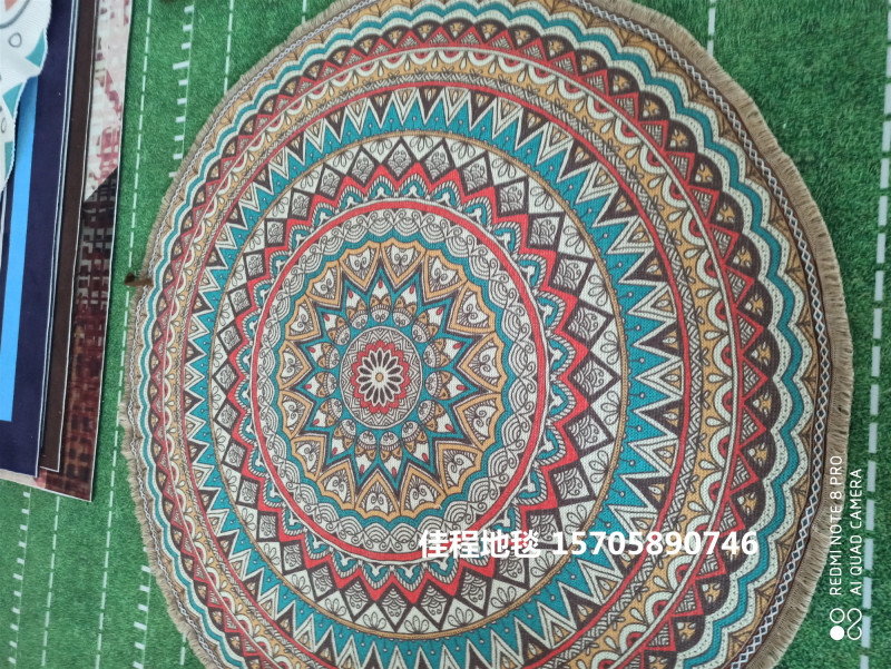 新款流苏圆形波斯风格地垫阿拉伯风情地垫室内垫圆形脚垫喷印地垫 有多个图案可以做,可以混图案也可以清装图案、可定制客人图案 ,尺寸是60*60cm/80*80cm/100*100cm/120*120cm...编织袋包装。涤纶100% 针织料 针织雪尼尔材质 。