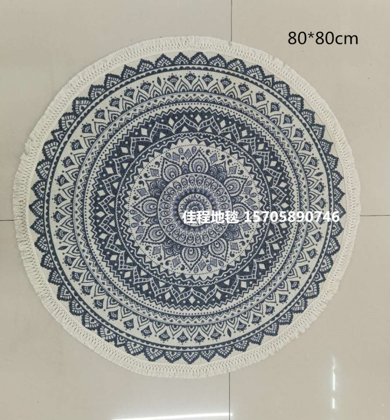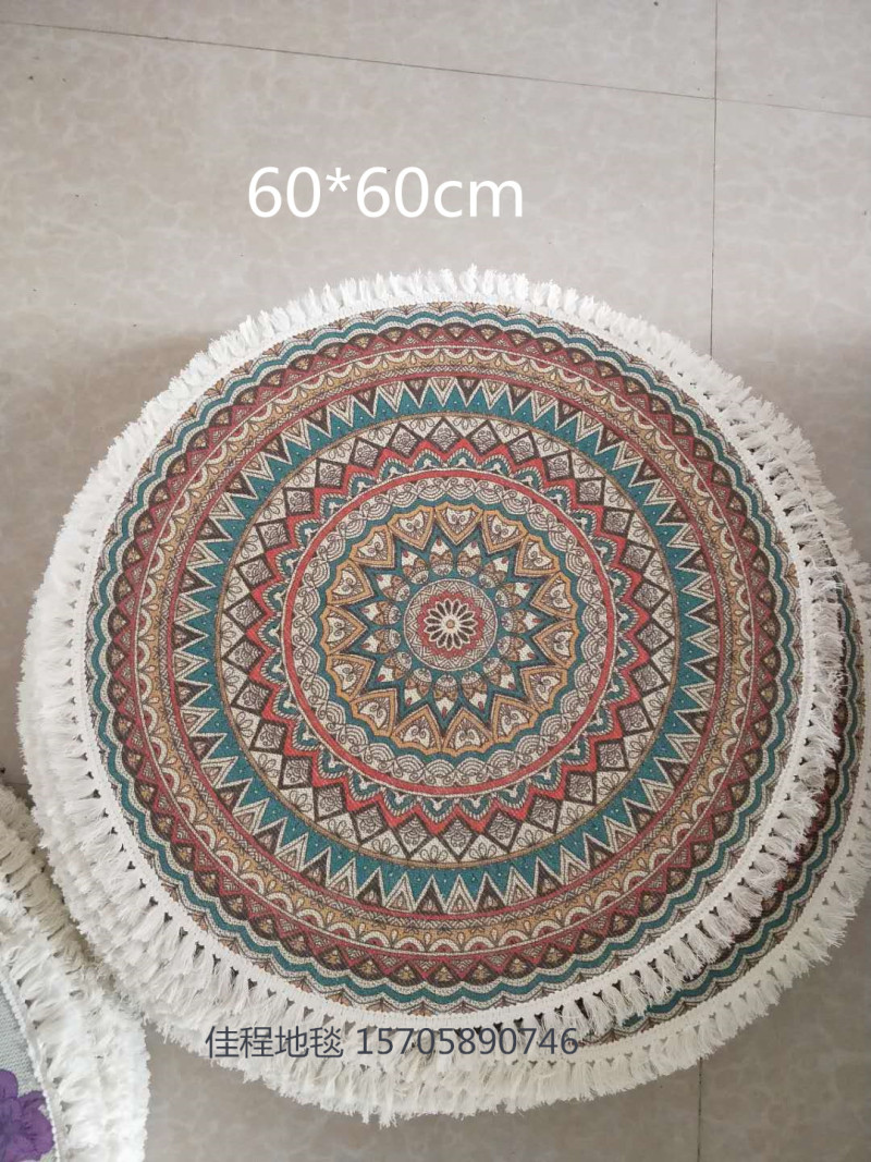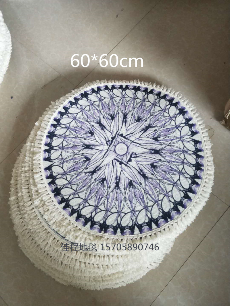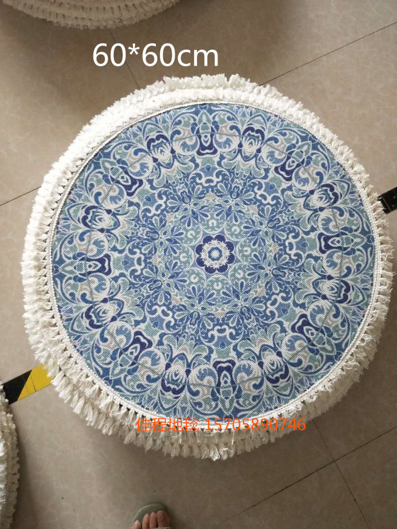 热卖流苏圆形波斯风格地垫阿拉伯风情地垫室内垫圆形脚垫喷印地垫