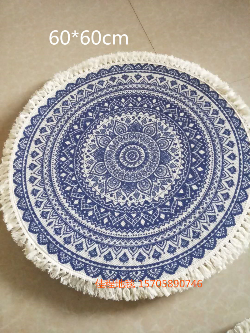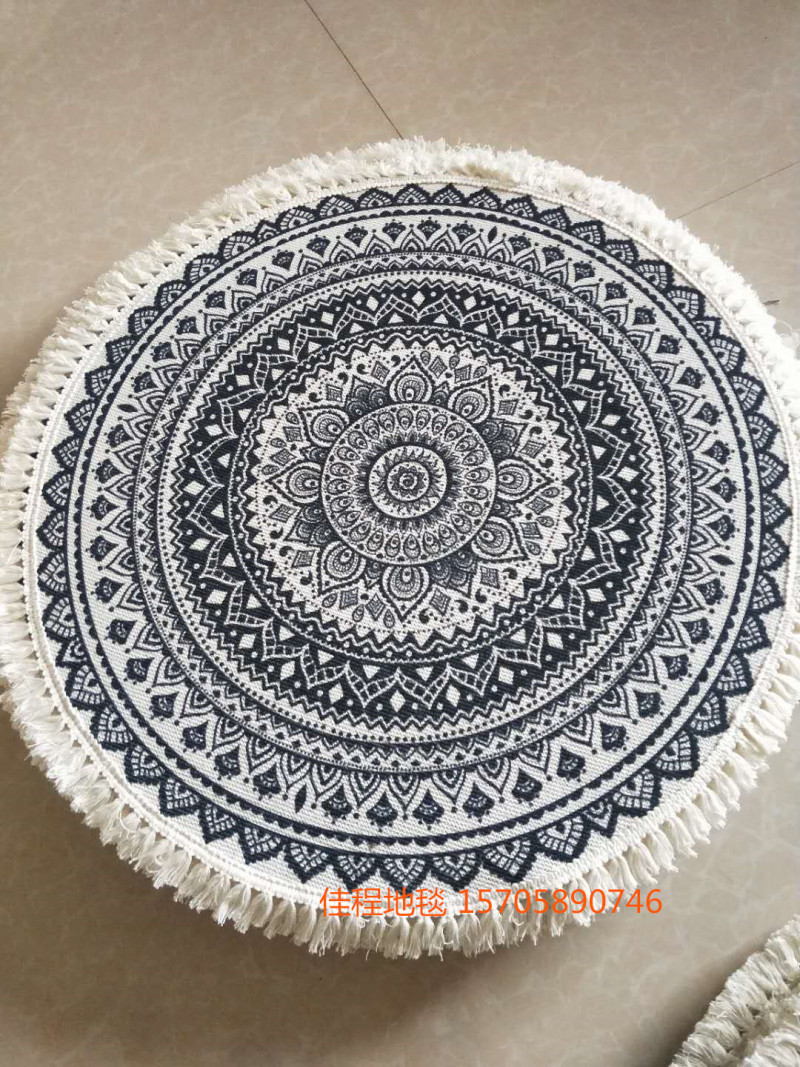 跨境出口北欧棉绳编制流苏地垫阳台棉麻抓周地毯民宿地铺茶几圆形卧室日式