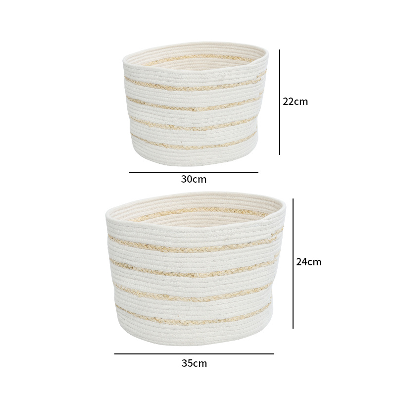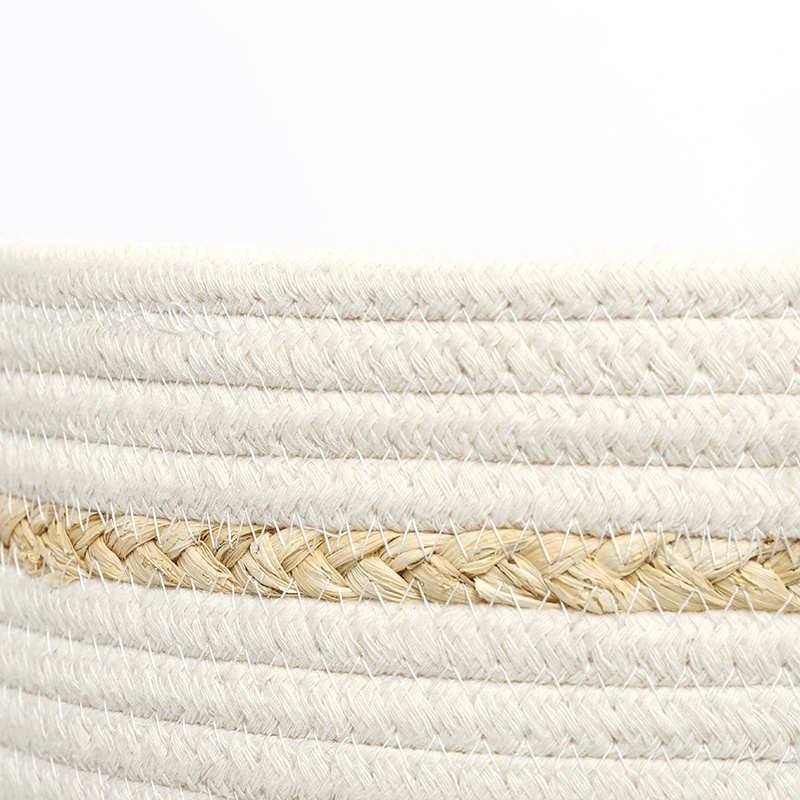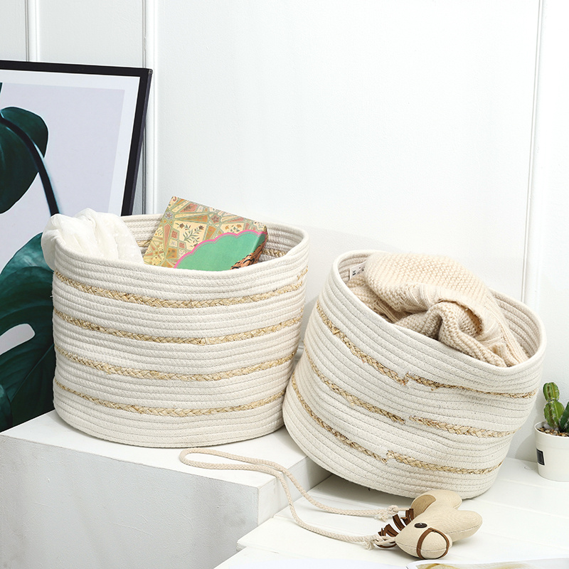 欧式简约圆形杂物毛绒玩具收纳篮棉绳编杂志内衣袜收纳筐