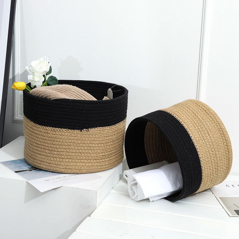 新品北欧风亚麻材质手工编织收纳筐收纳盒