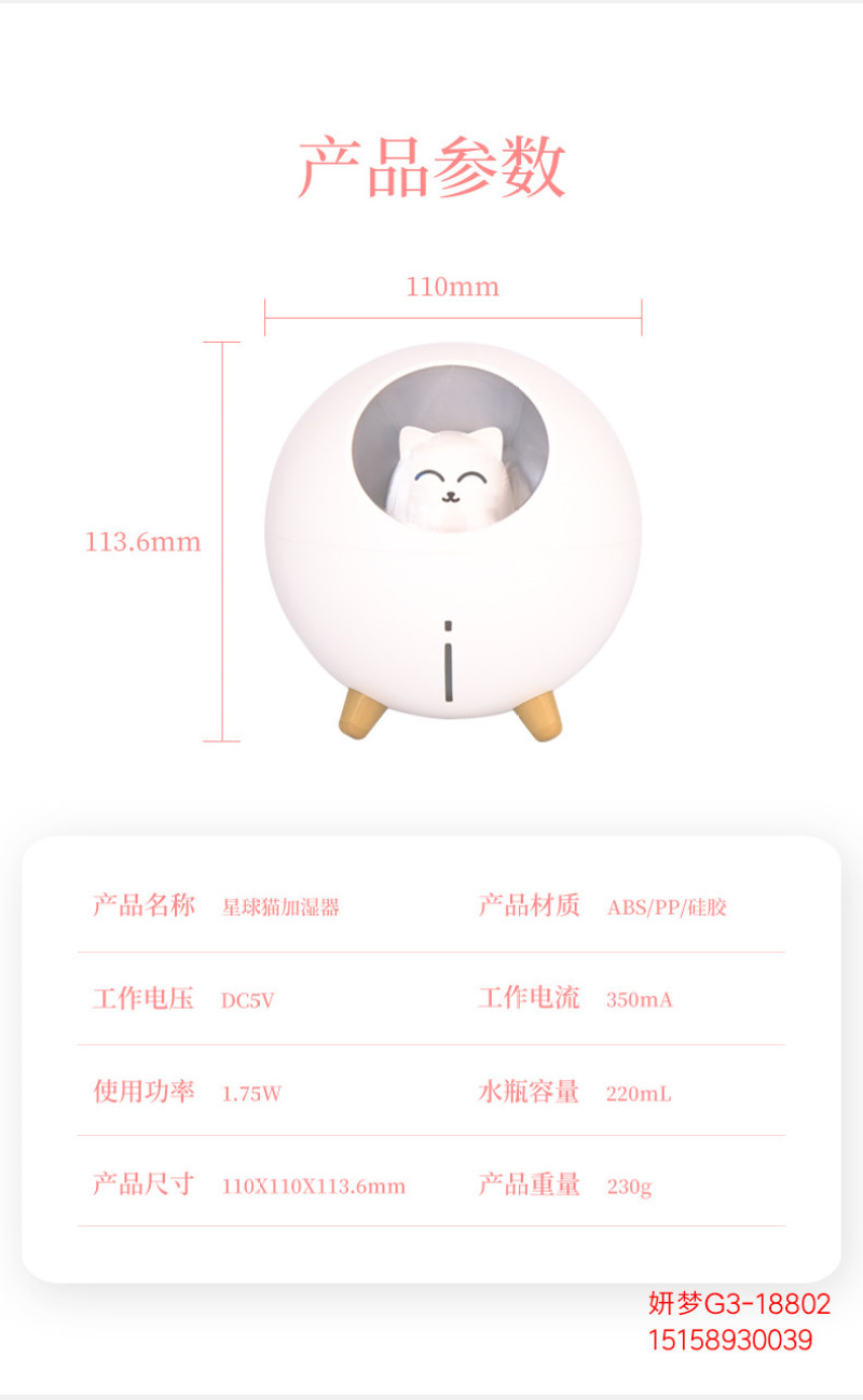 星球猫加湿器可充电家用迷你小型静音办公室桌面车载usb喷雾宿舍