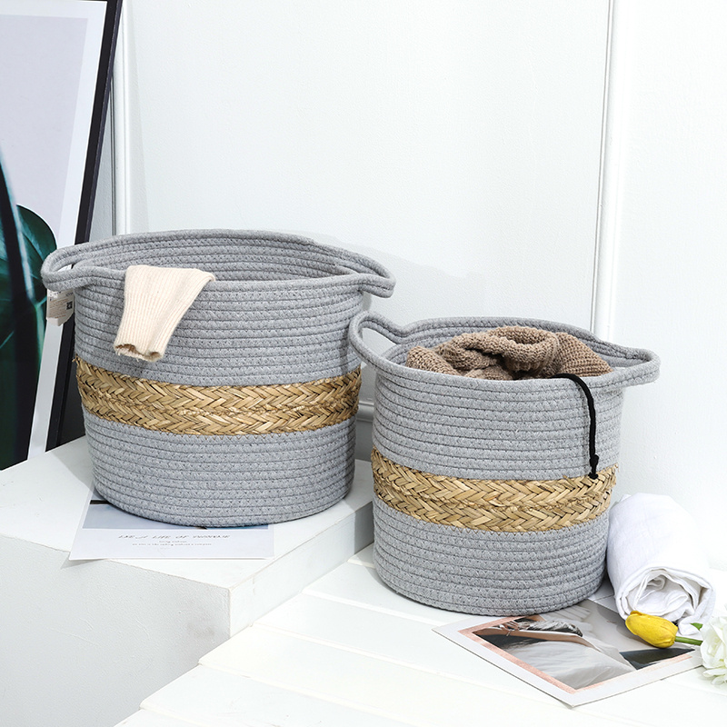 北欧ins棉线编织收纳桶收纳篮杂物整理筐草编脏衣篮杂物玩具筐