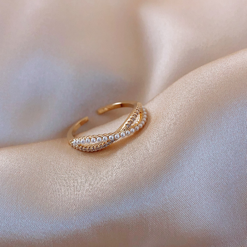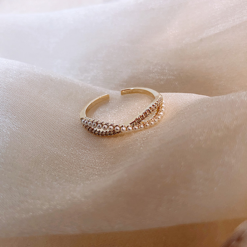 交叉珍珠戒指女时尚个性ins潮日系轻奢简约网红气质食指指环女戒
