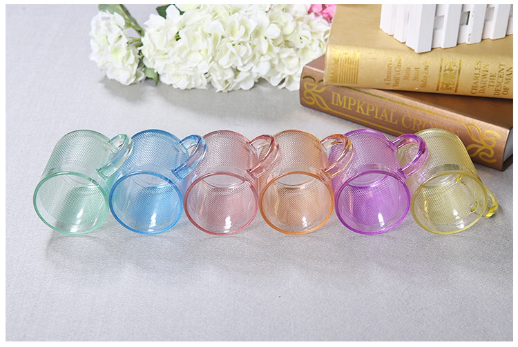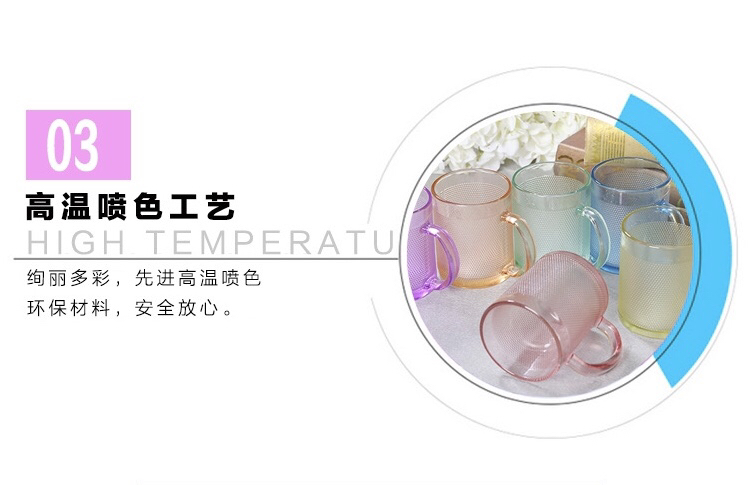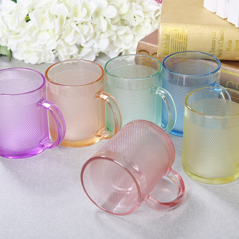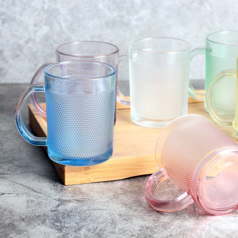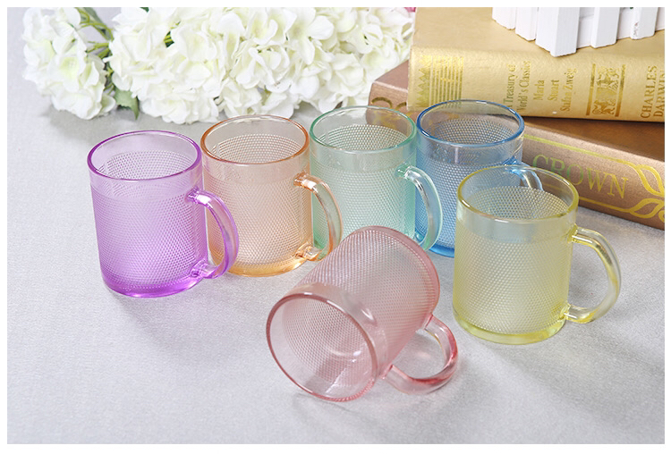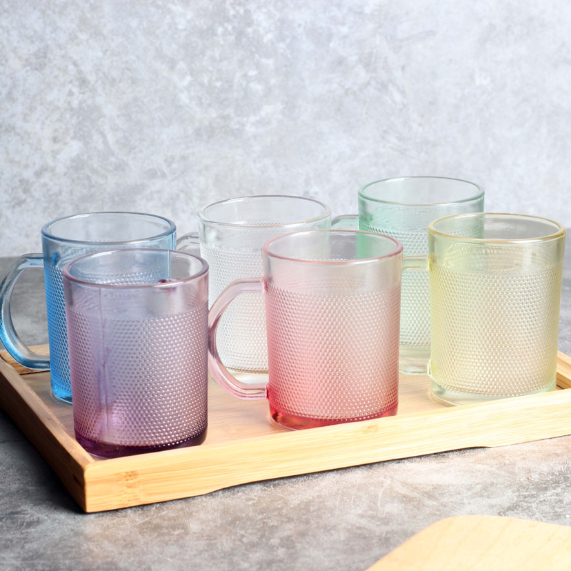彩色六只装玻璃带把杯加厚玻璃杯果汁杯子家用套装防烫耐热水杯