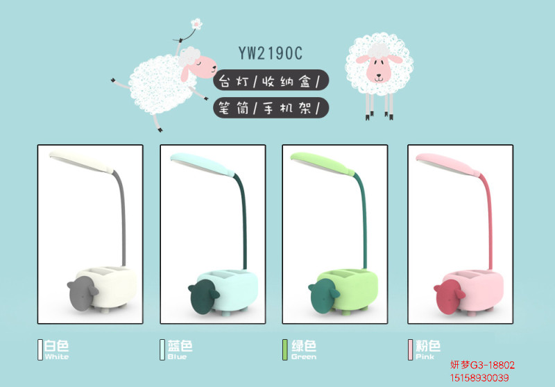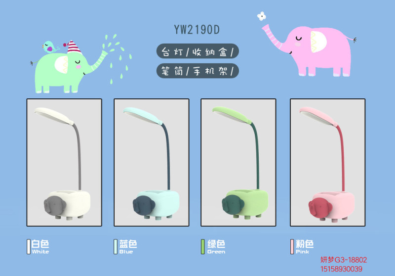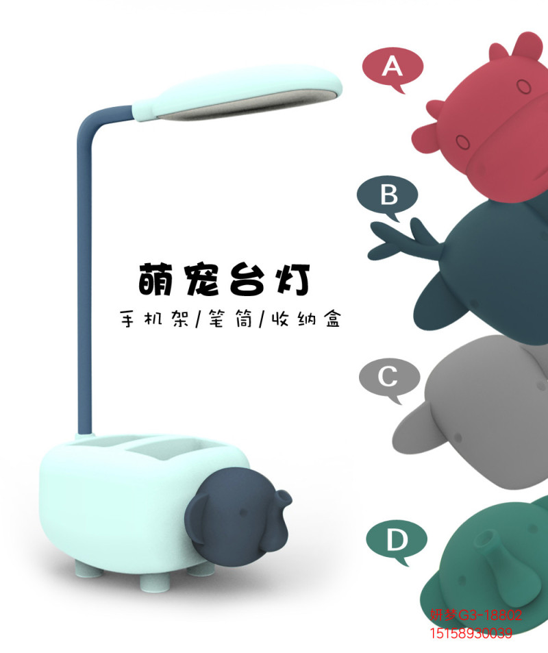 USB充电led笔筒小台灯护眼学生书桌宿舍卧床头灯卡通可爱大象绵羊