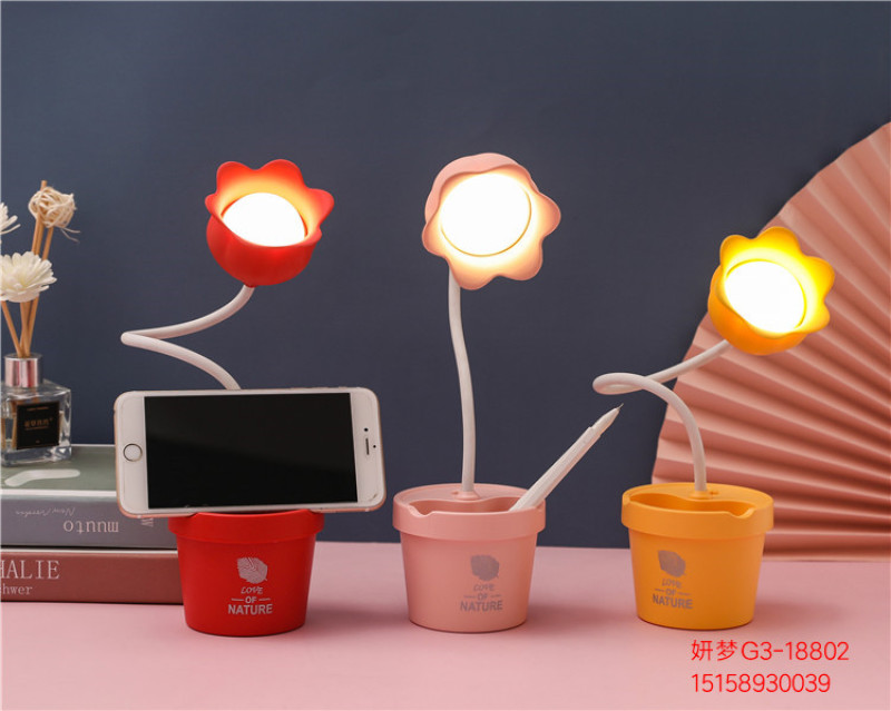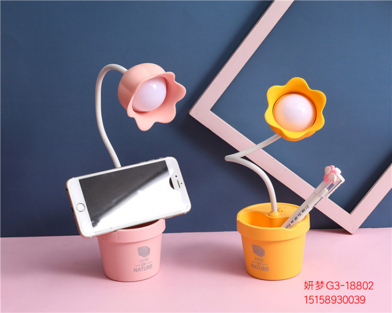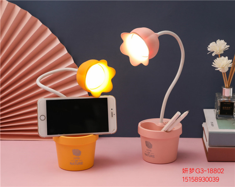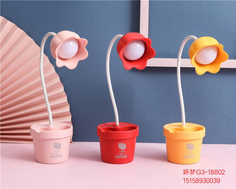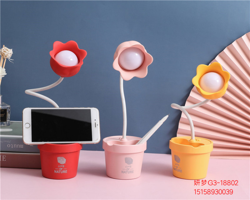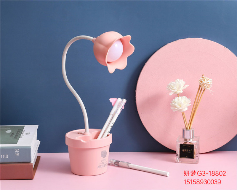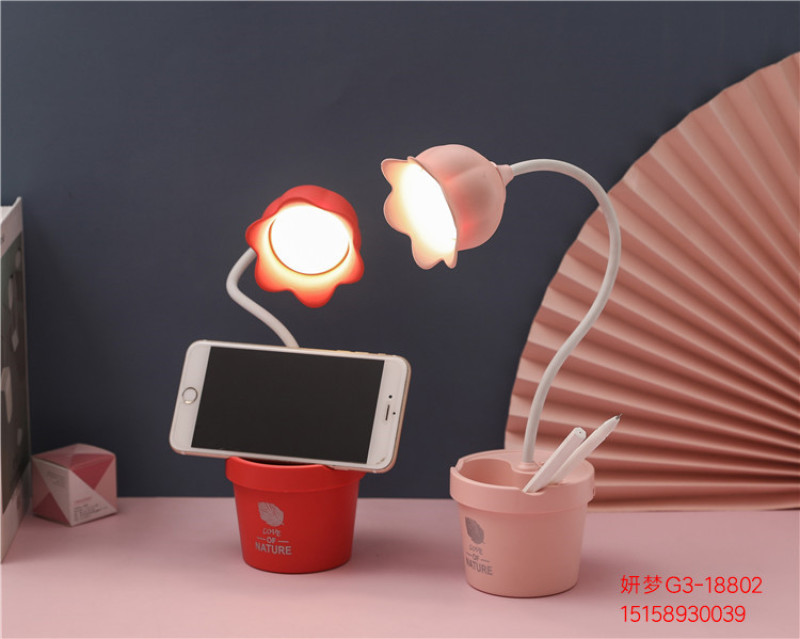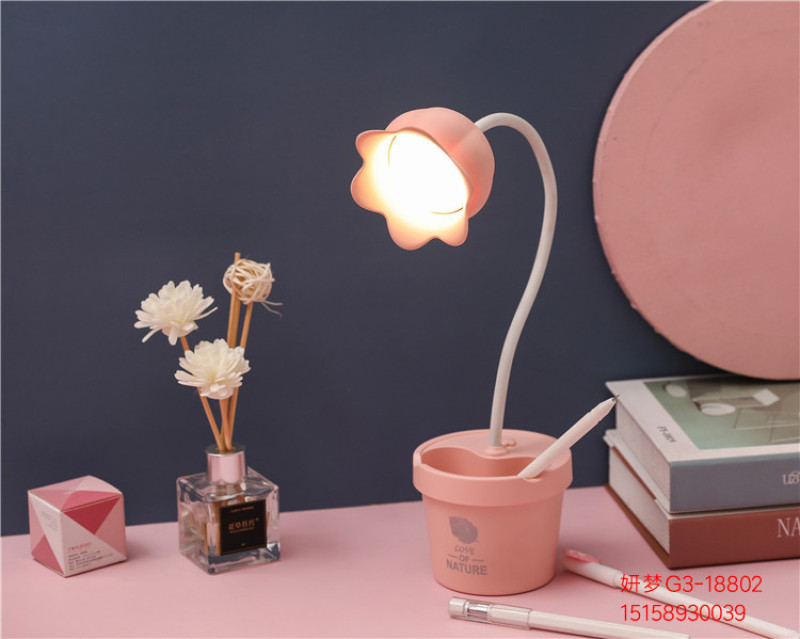 可爱花朵台灯学习LED阅读可调光USB充电便携学生宿舍卧室床头夜灯