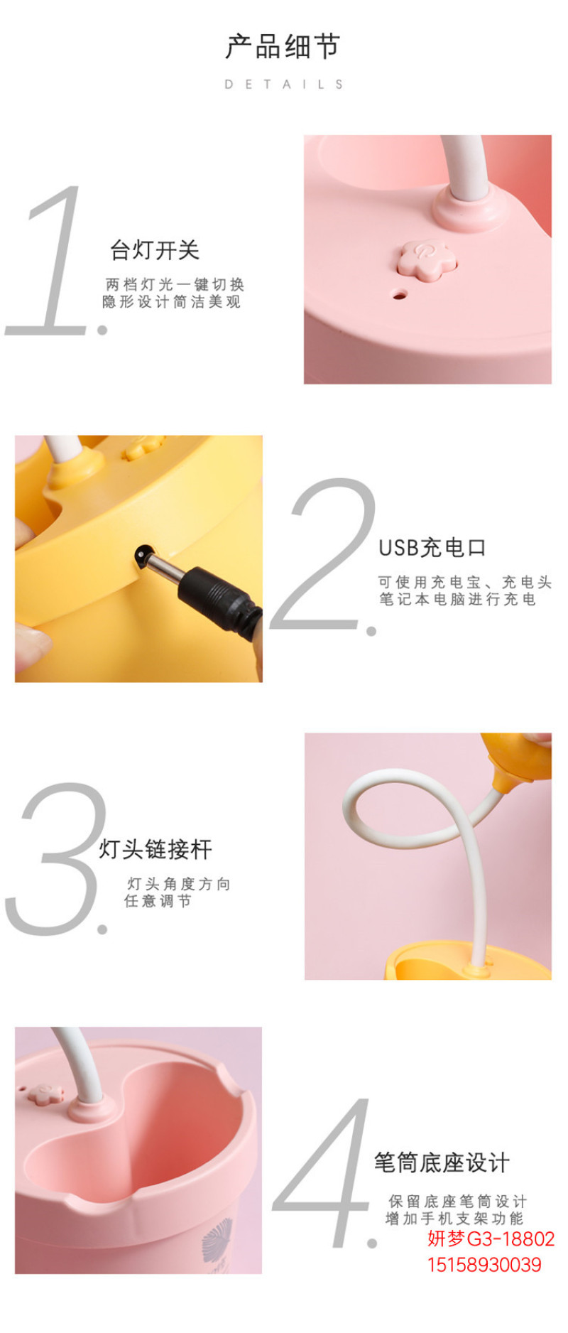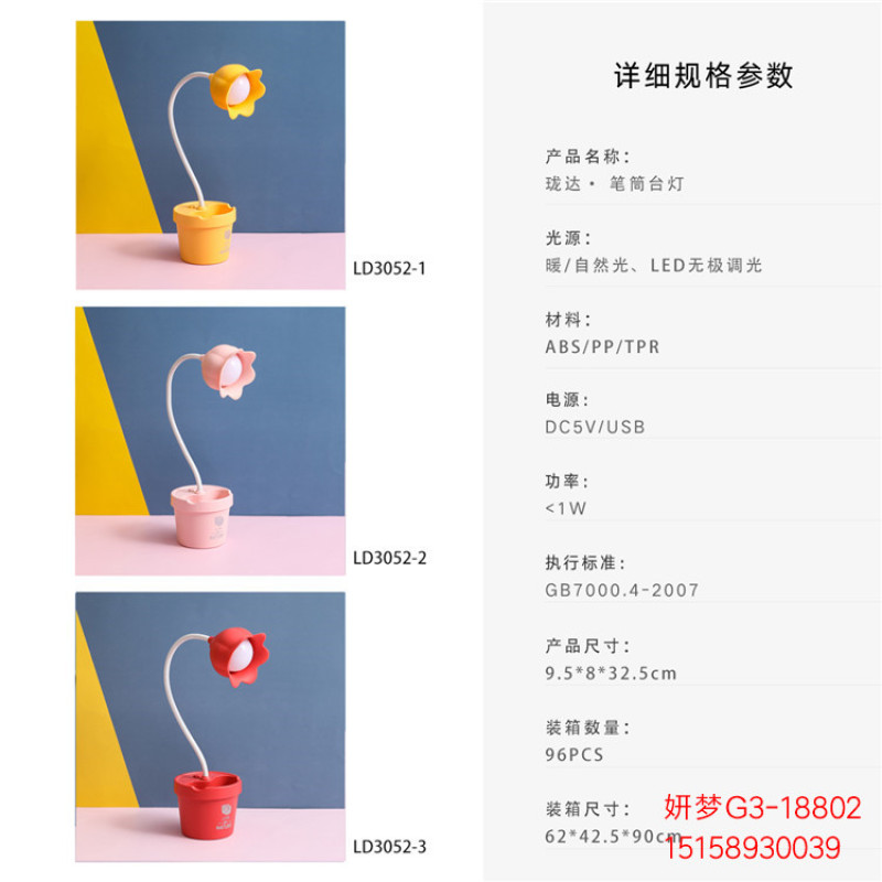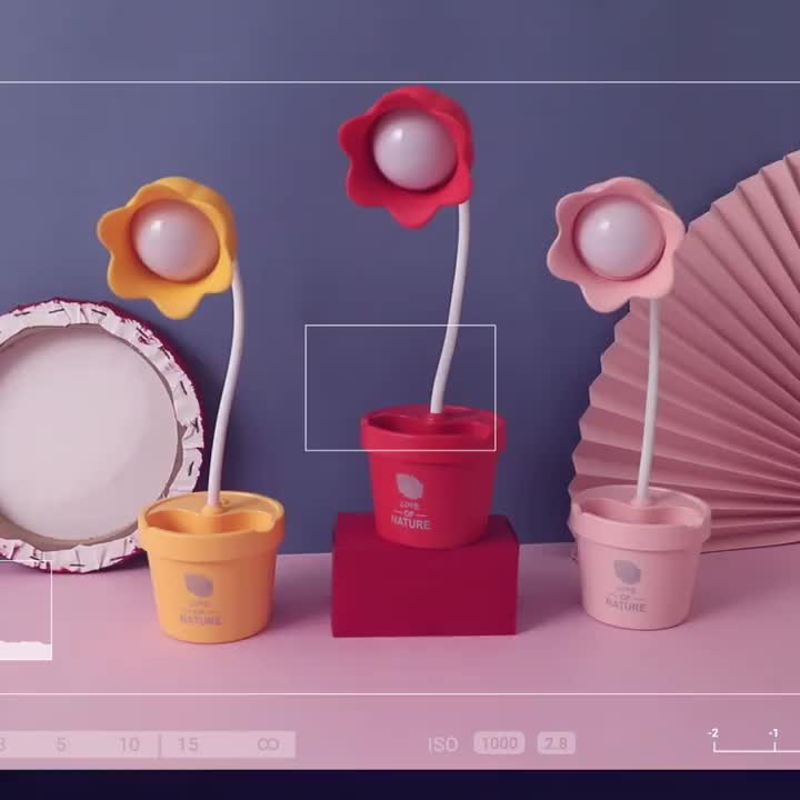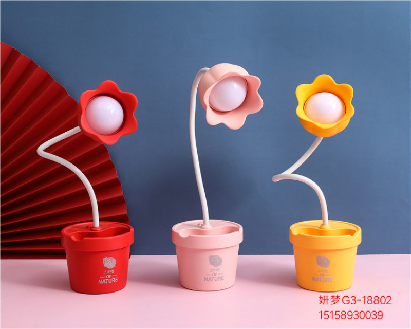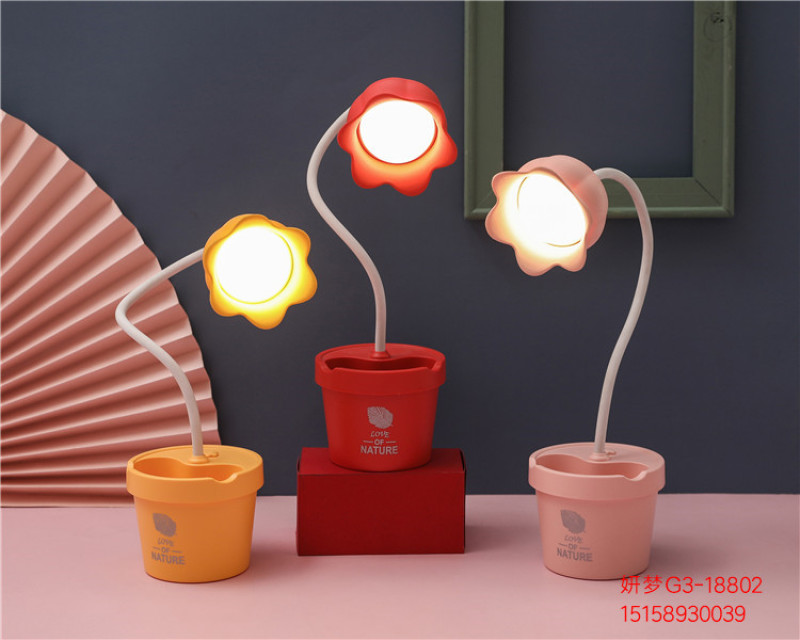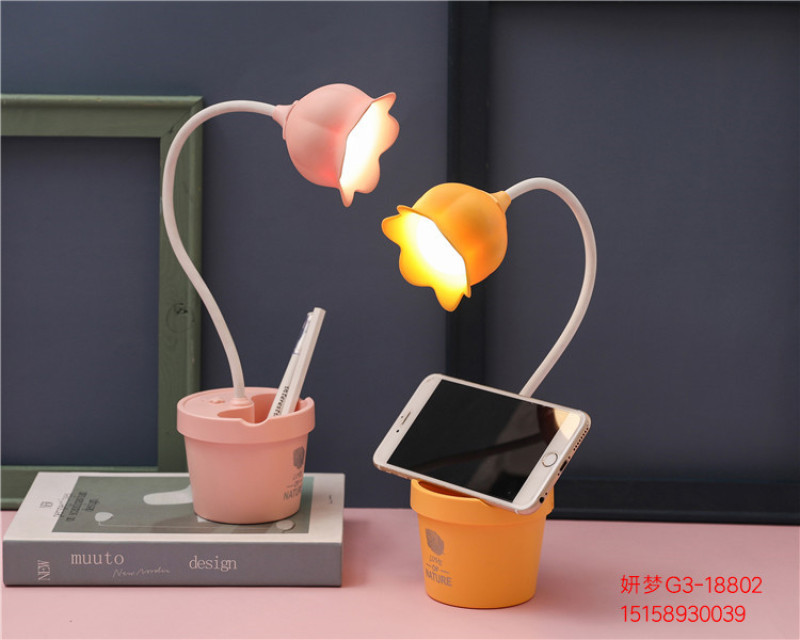 可爱花朵台灯学习LED阅读可调光USB充电便携学生宿舍卧室床头夜灯
