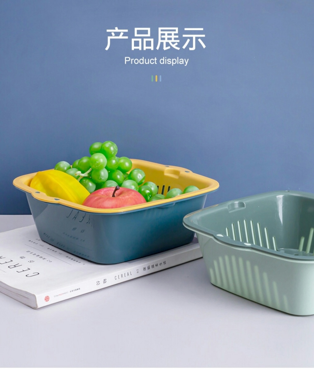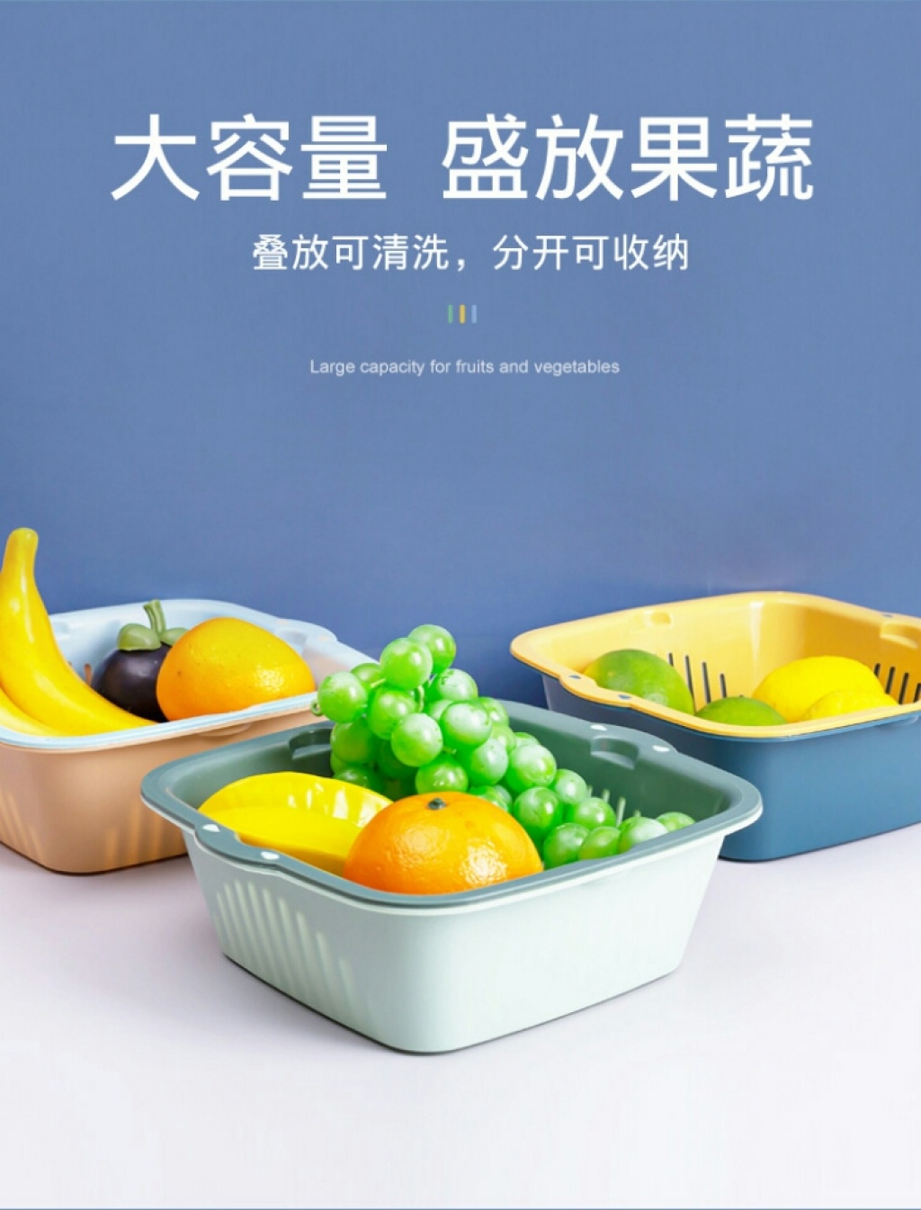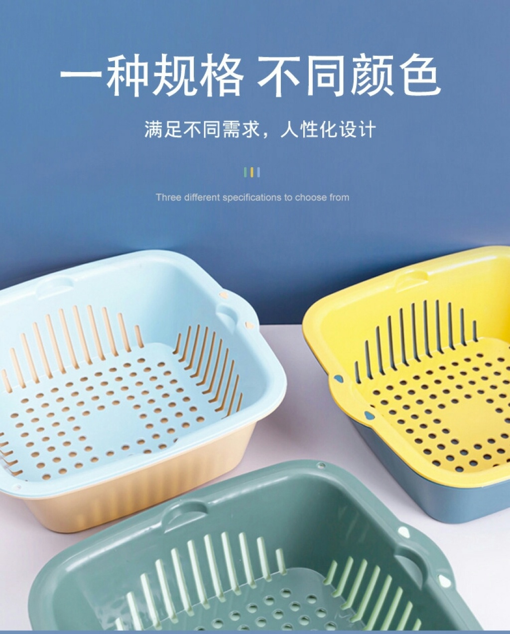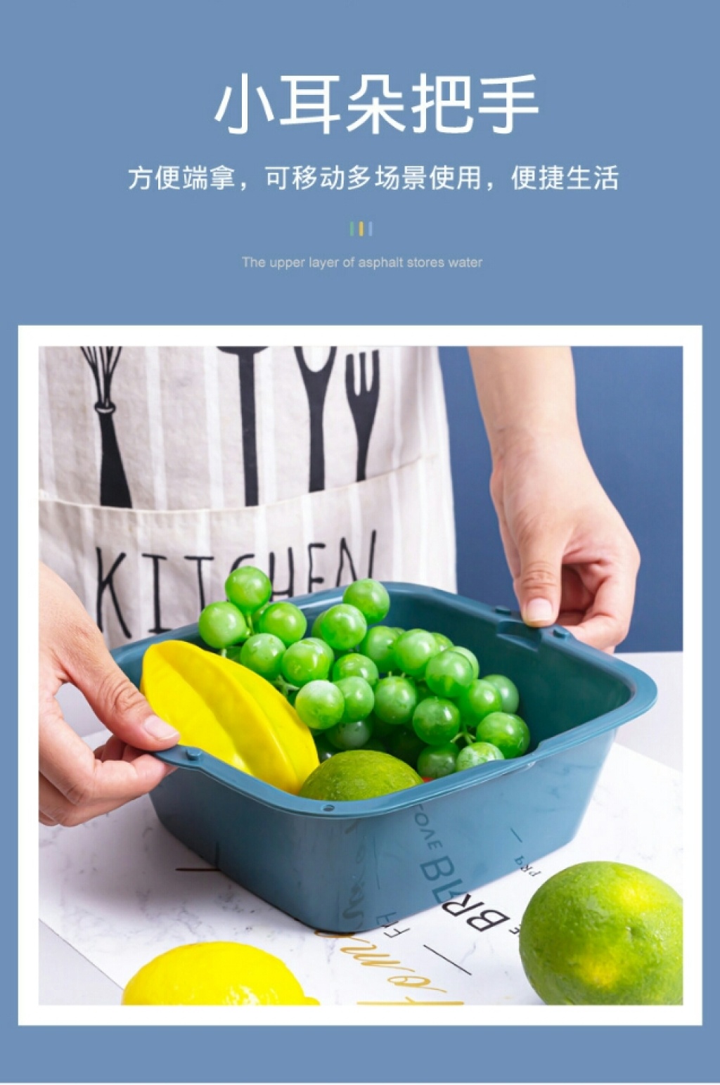 X28-8337多功能家用方形双层沥水篮创意厨房用品果蔬篮塑料水果篮