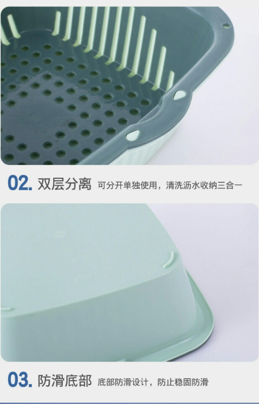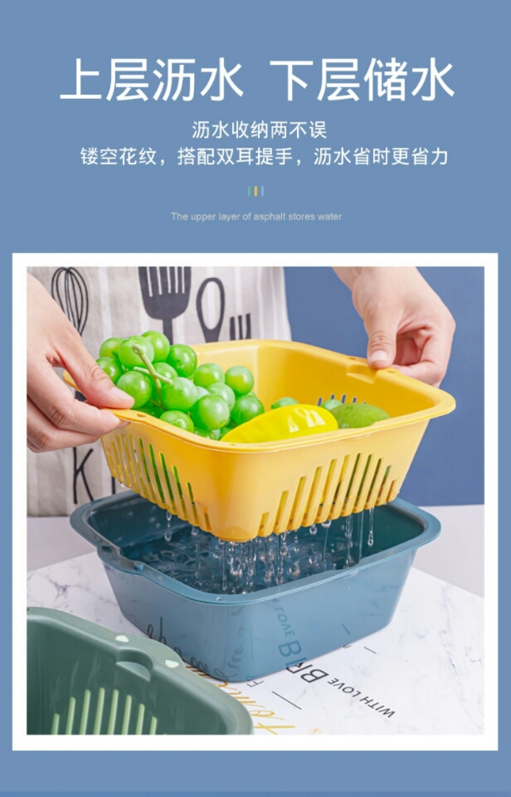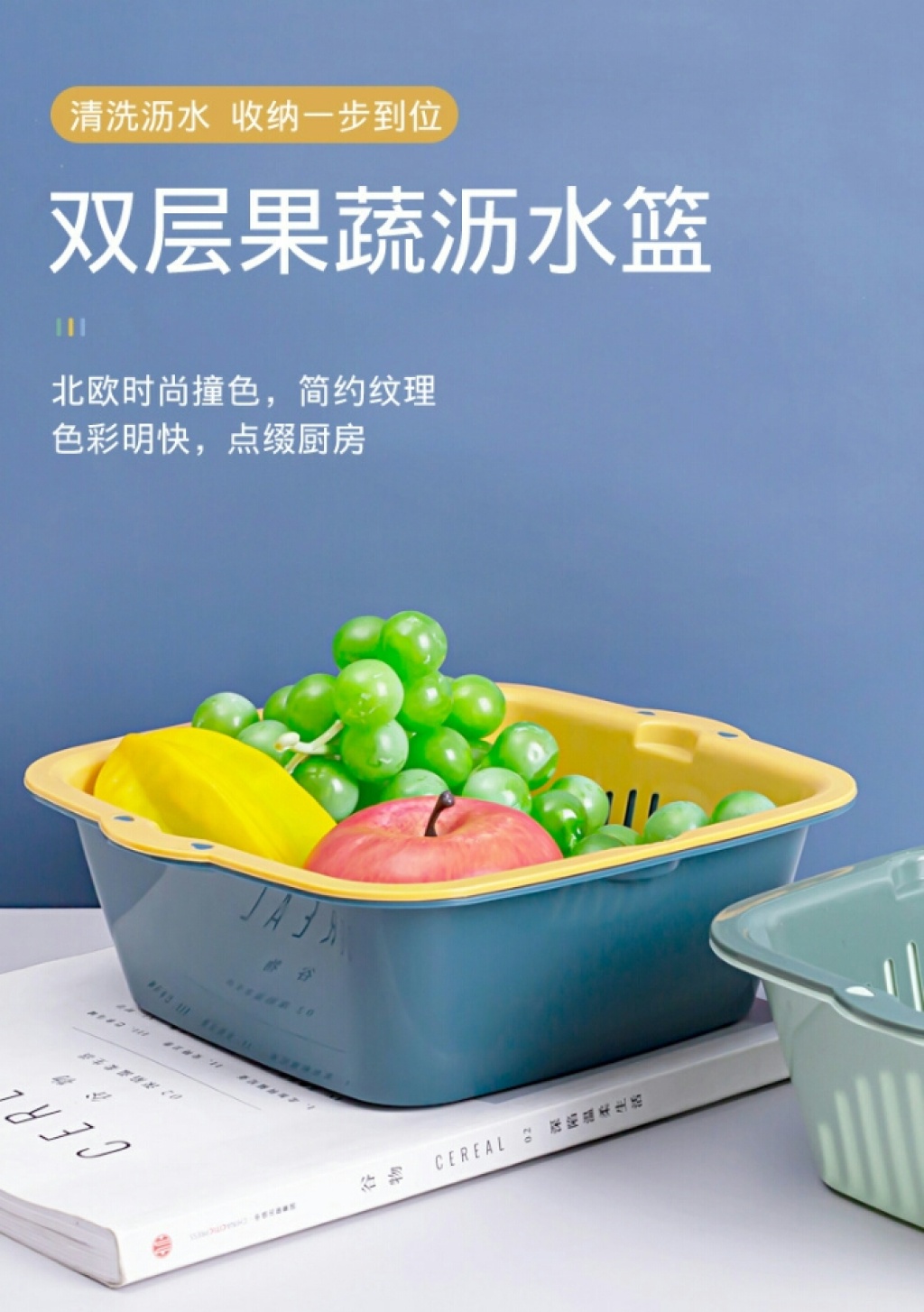 X28-8337多功能家用方形双层沥水篮创意厨房用品果蔬篮塑料水果篮