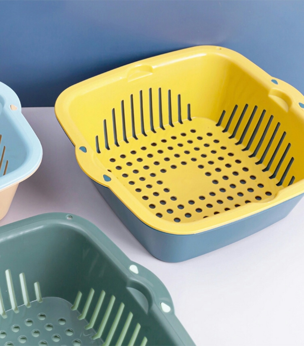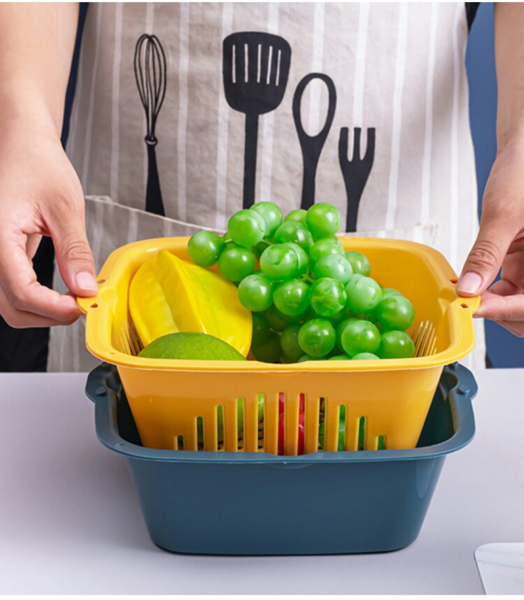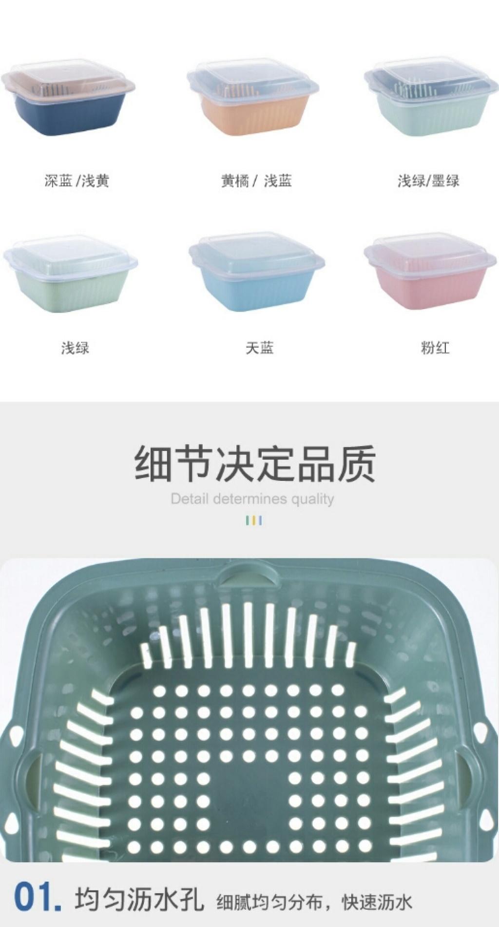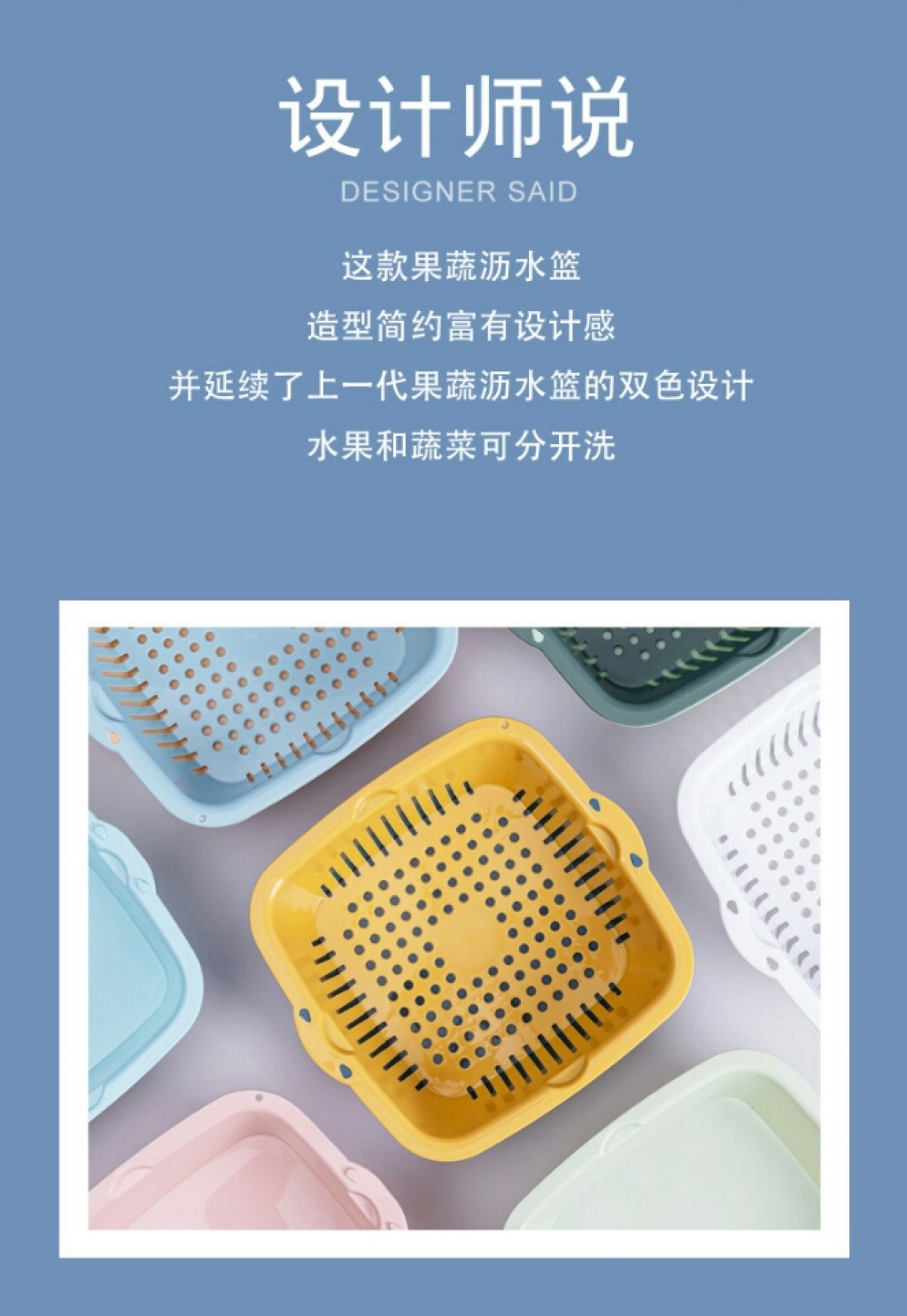 X28-8337多功能家用方形双层沥水篮创意厨房用品果蔬篮塑料水果篮