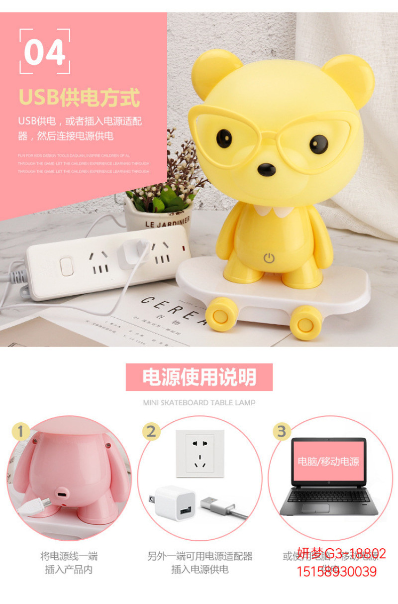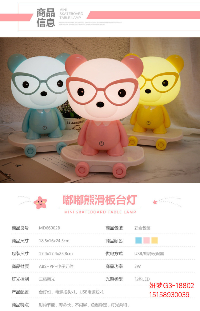产品名称:LED滑板开关款萌哒熊台灯