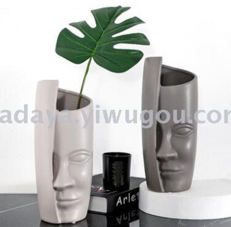 ins北欧艺术人脸花器陶瓷花瓶客厅插花摆件工作室店铺家居装饰品