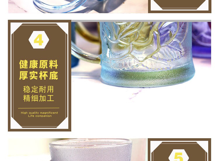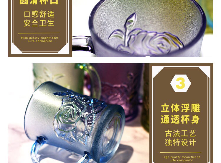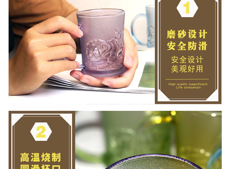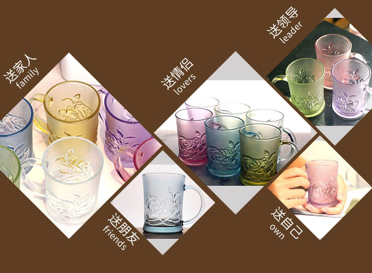炫彩玻璃玫瑰杯彩色玻璃套装客厅果汁啤酒杯家用耐热水杯子茶杯具