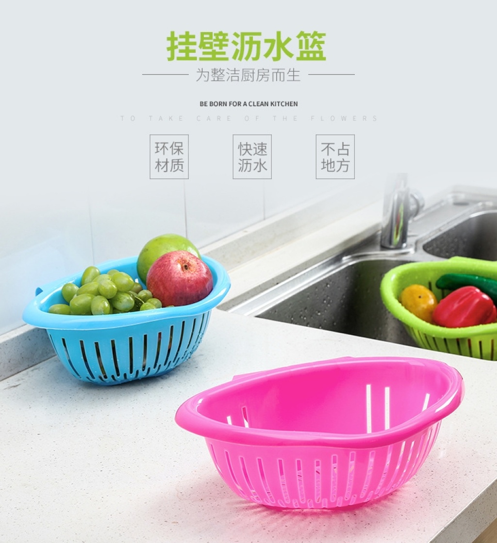 D05-881沥水篮 家用厨房沥水篮 塑料多功能果蔬篮 挂壁式洗菜篮