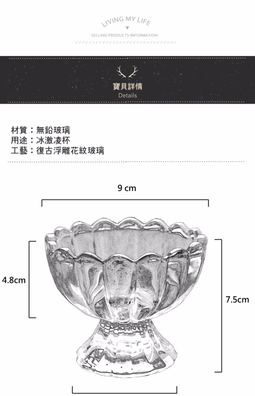 贝壳冰激凌碗 小号无铅玻璃家用冰淇淋单球冰激凌高脚玻璃杯
