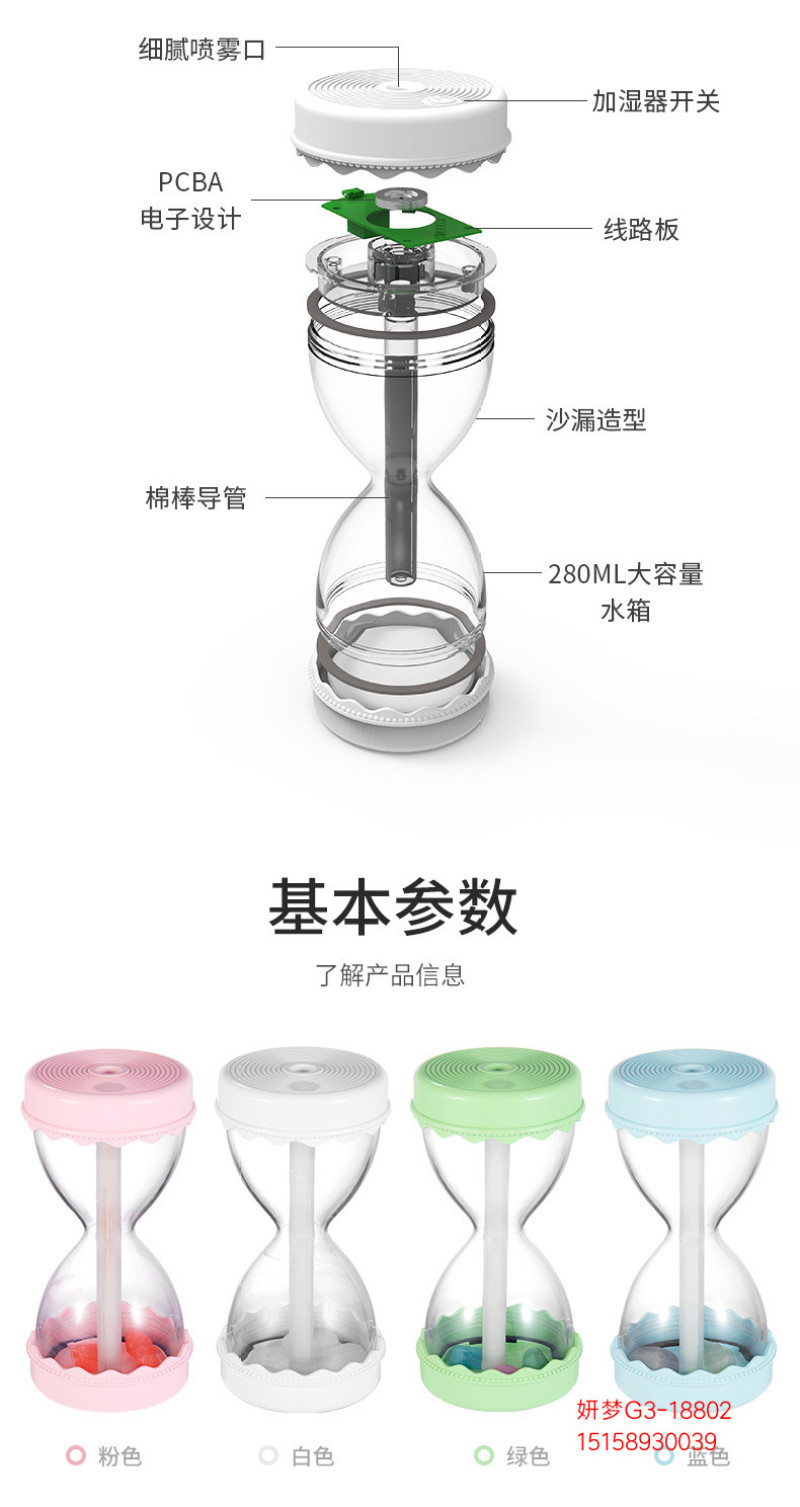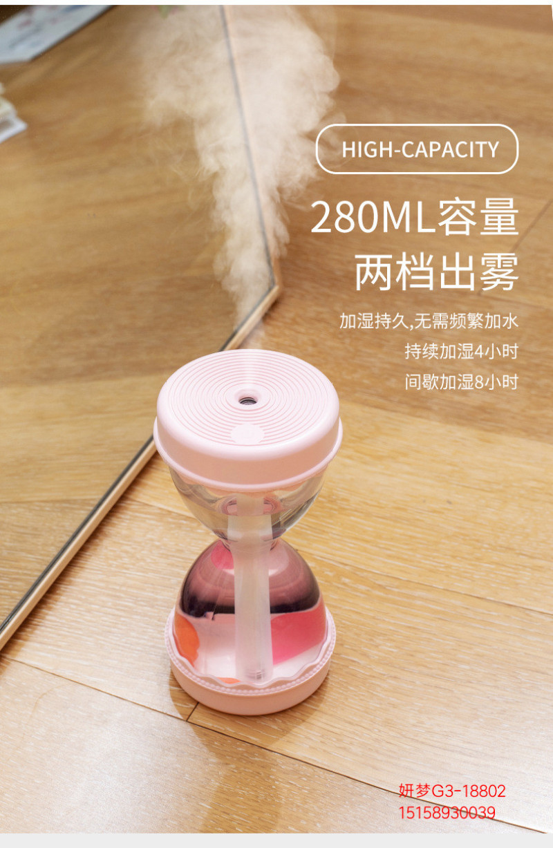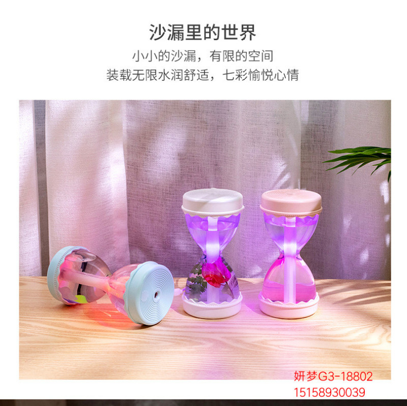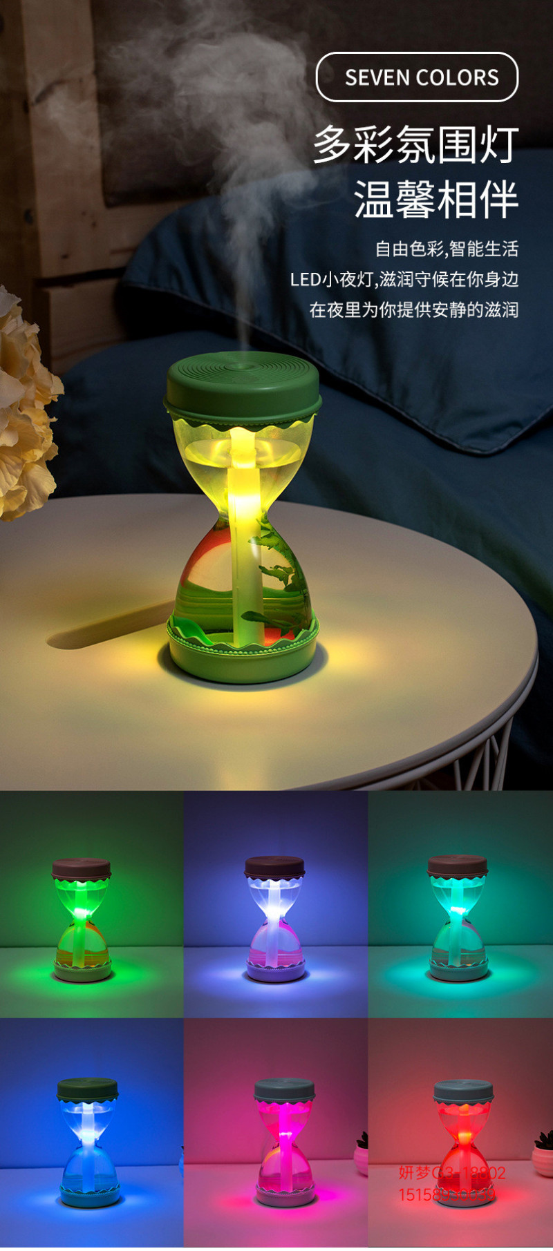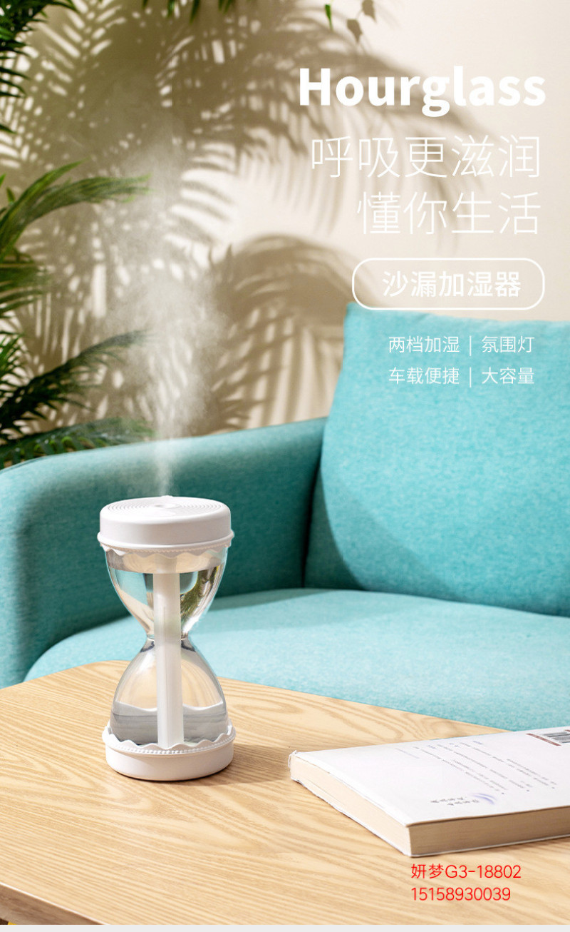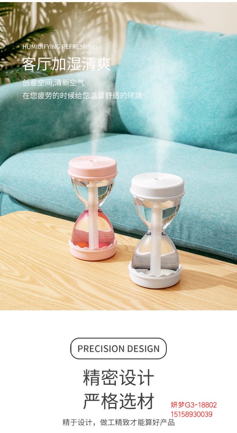 沙漏七彩灯光USB加湿器创意加湿器时尚加湿器适用汽车车载加湿器