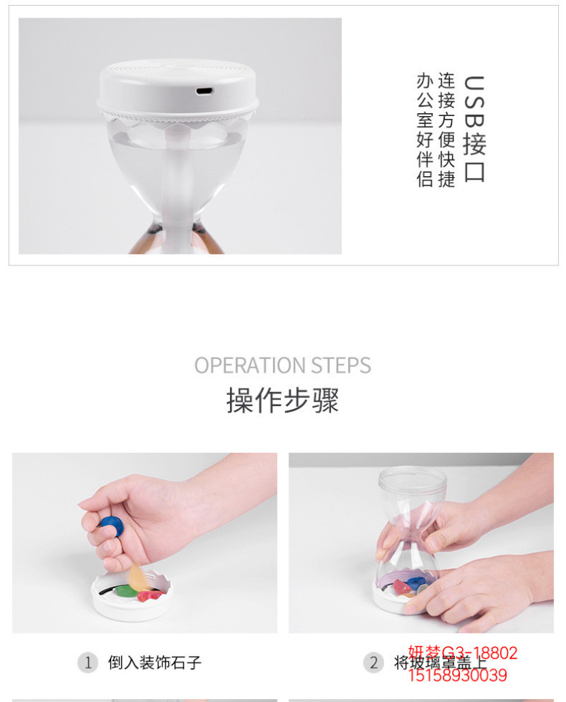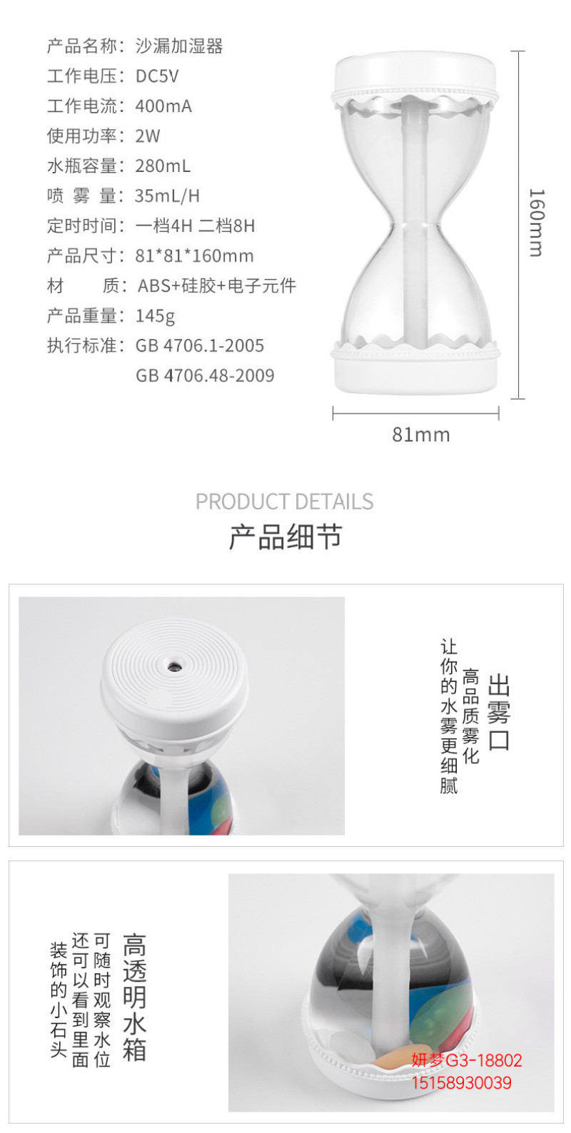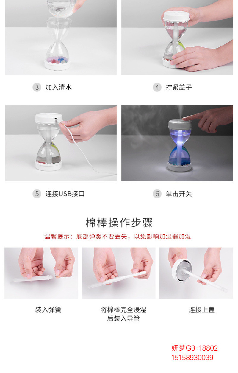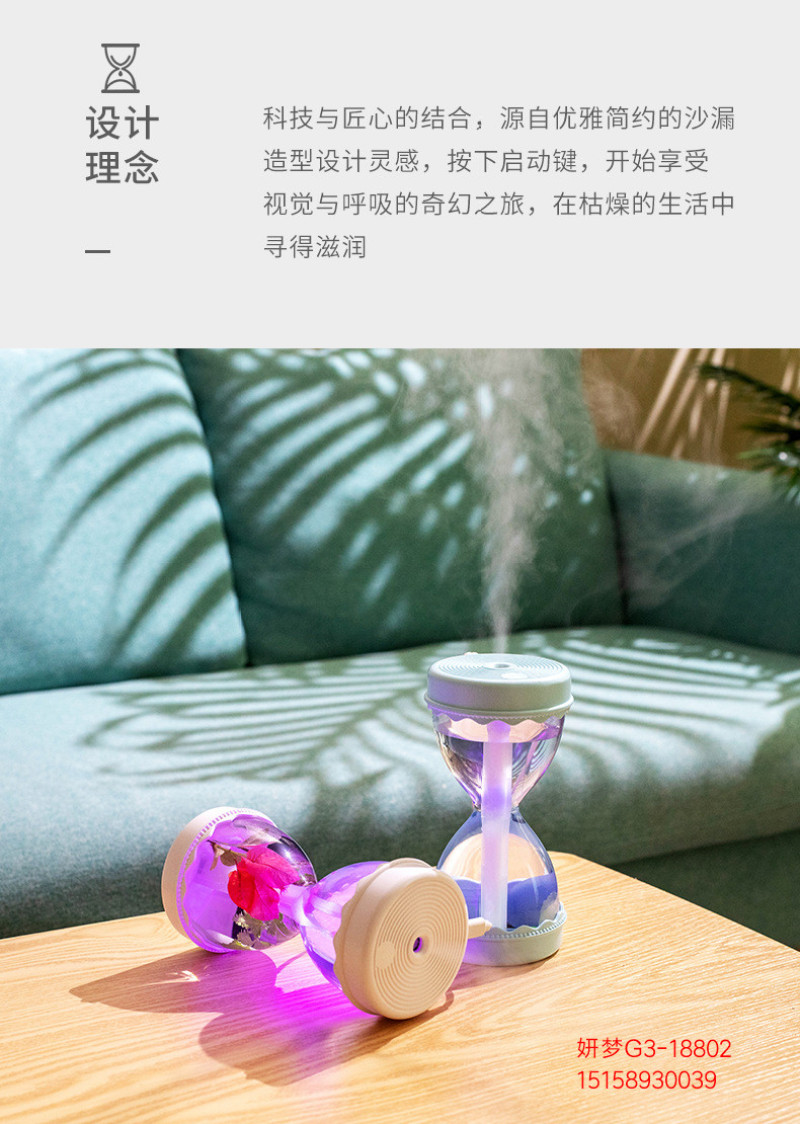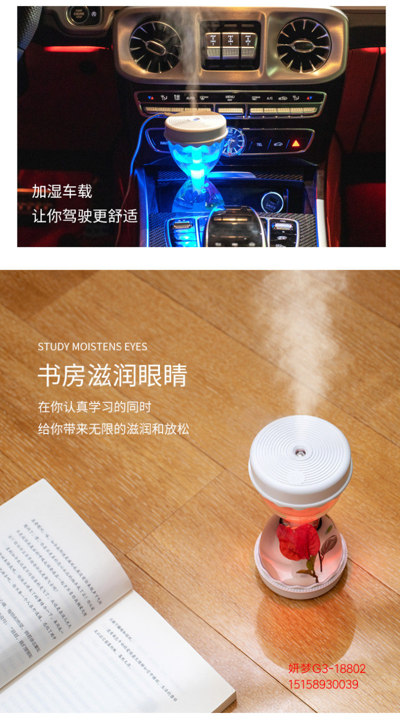 沙漏七彩灯光USB加湿器创意加湿器时尚加湿器适用汽车车载加湿器