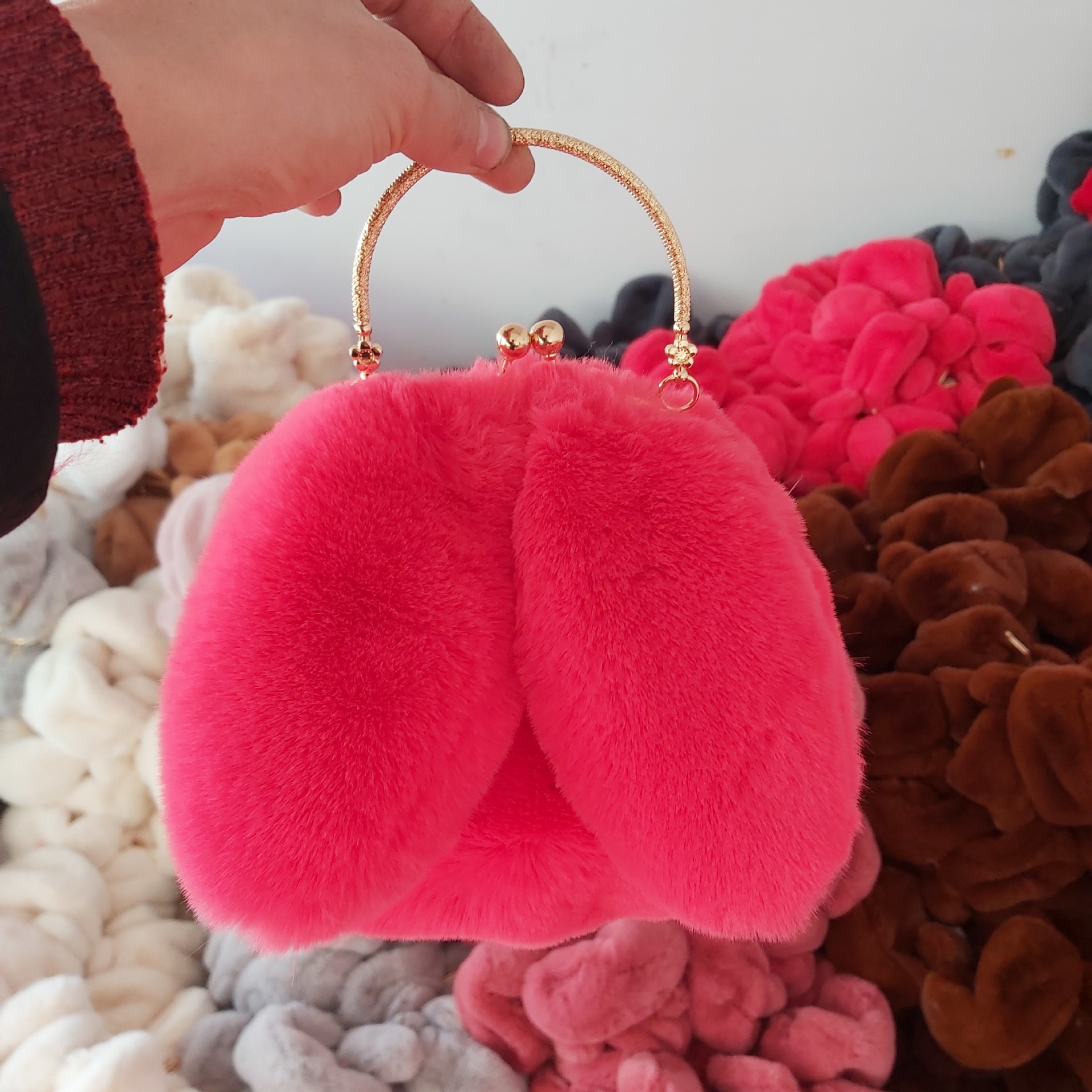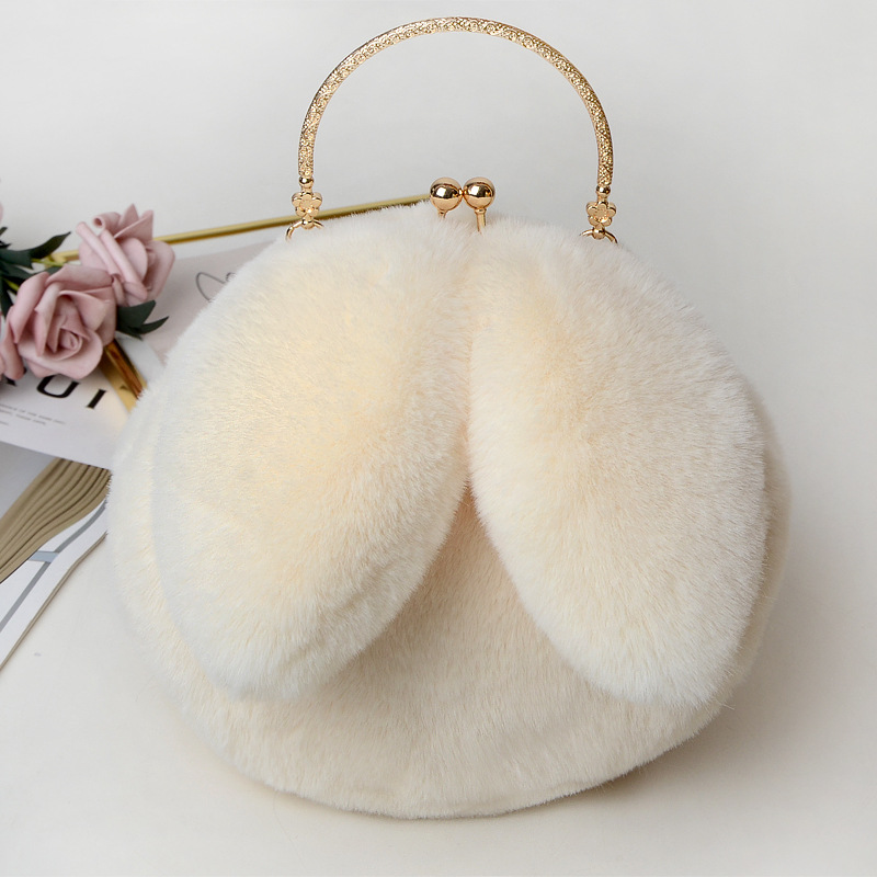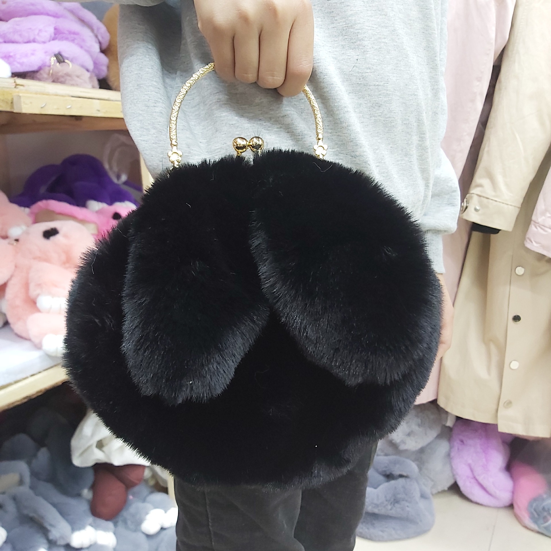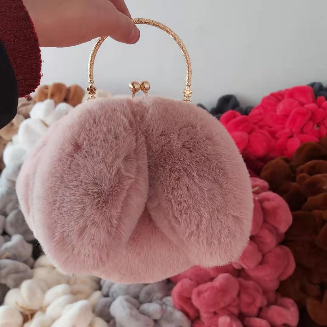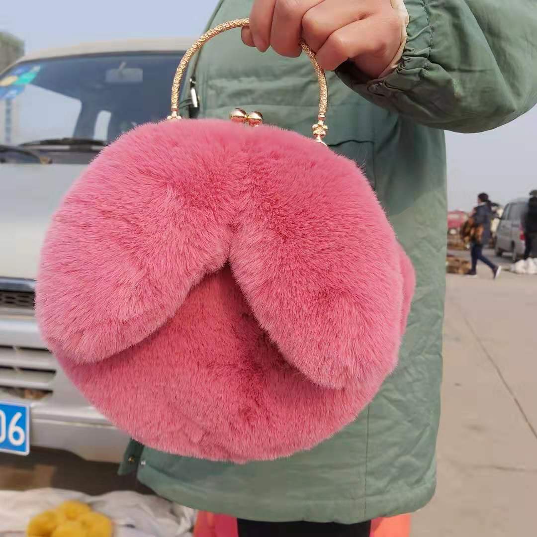 新款时尚毛绒兔耳朵链条包百搭可爱软萌兔子单肩斜挎手提小圆包包