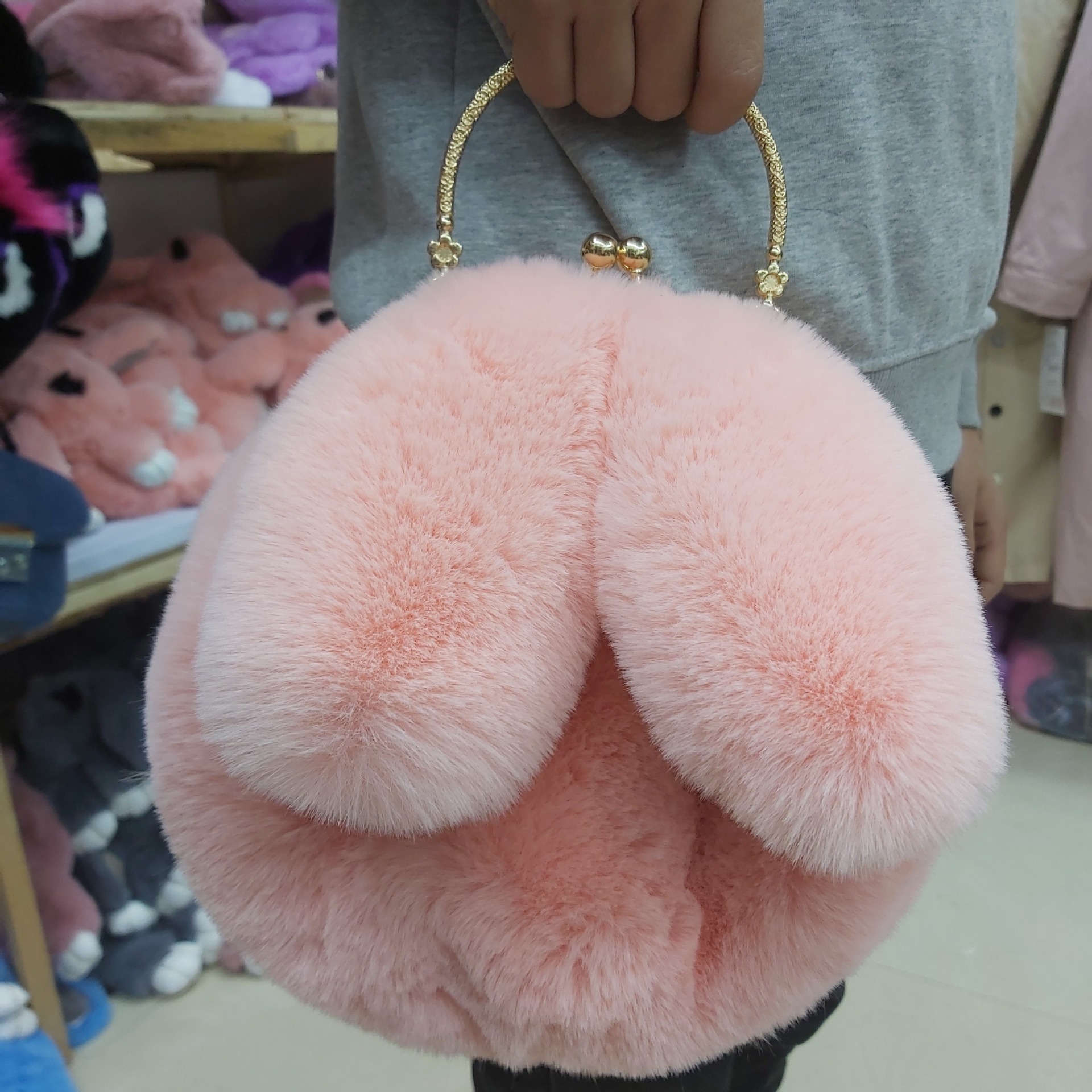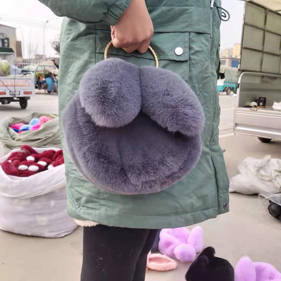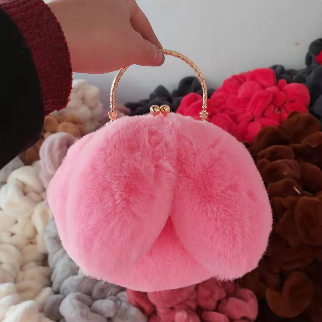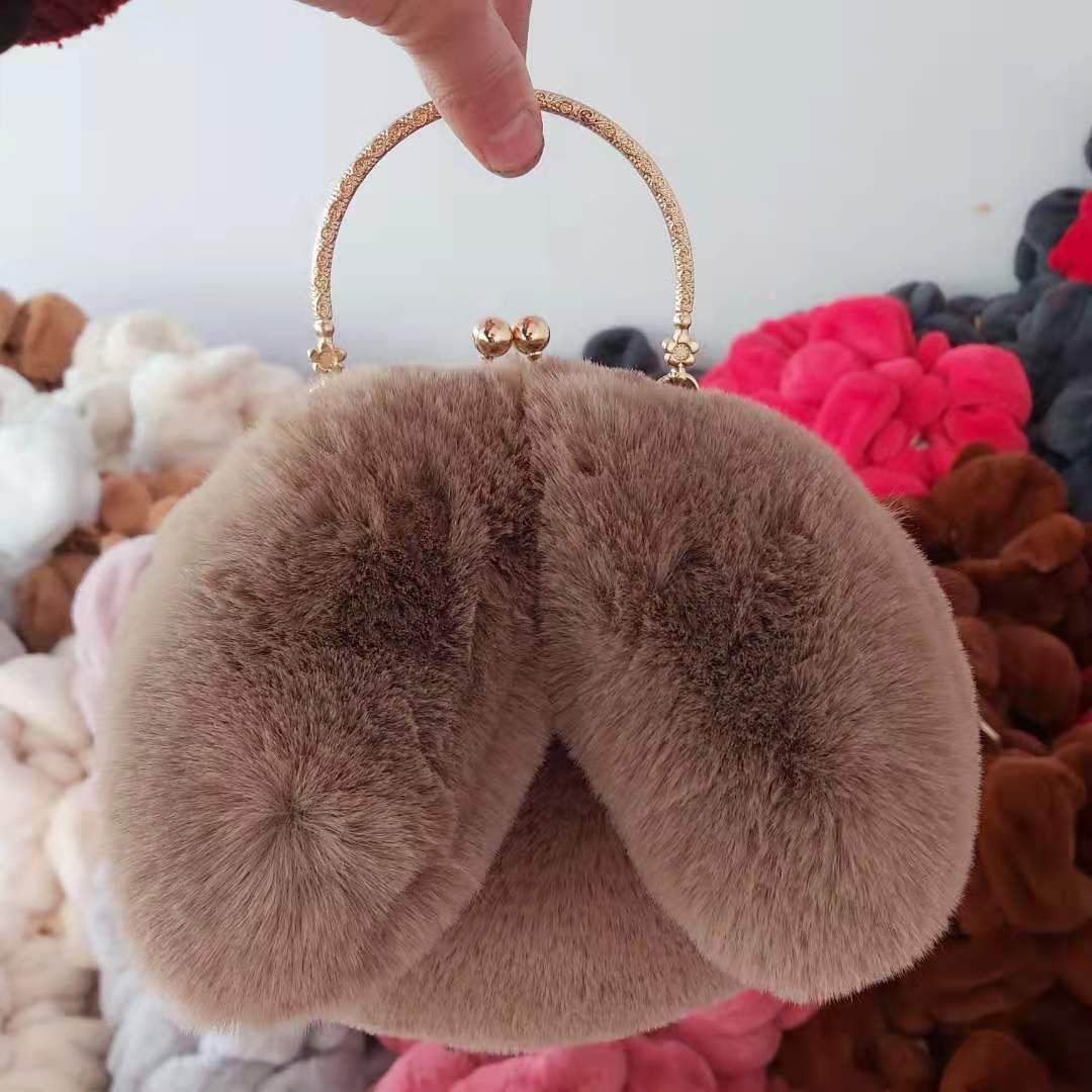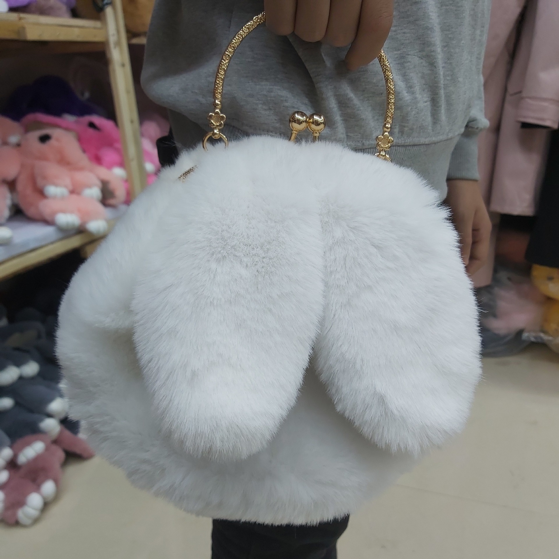 新款时尚毛绒兔耳朵链条包百搭可爱软萌兔子单肩斜挎手提小圆包包